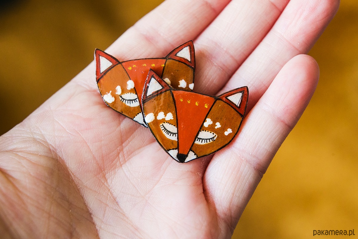 Kolczyki sztyfty, ręcznie rysowane na folii termokurczliwej.