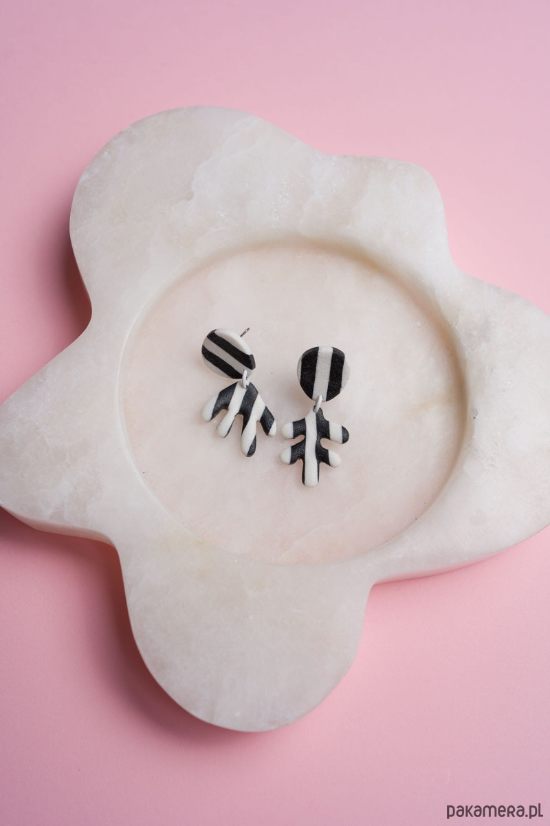 Wiszące kolczyki inspirowane twórczością Henri Matisse- MINI WERSJA. Każdy element jest wykonany, wycinany i szlifowany ręcznie z dbałością o każdy szczegół.