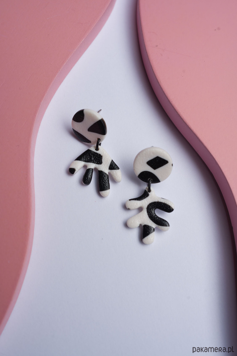 Wiszące kolczyki inspirowane twórczością Henri Matisse- MINI WERSJA. Każdy element jest wykonany, wycinany i szlifowany ręcznie z dbałością o każdy szczegół.