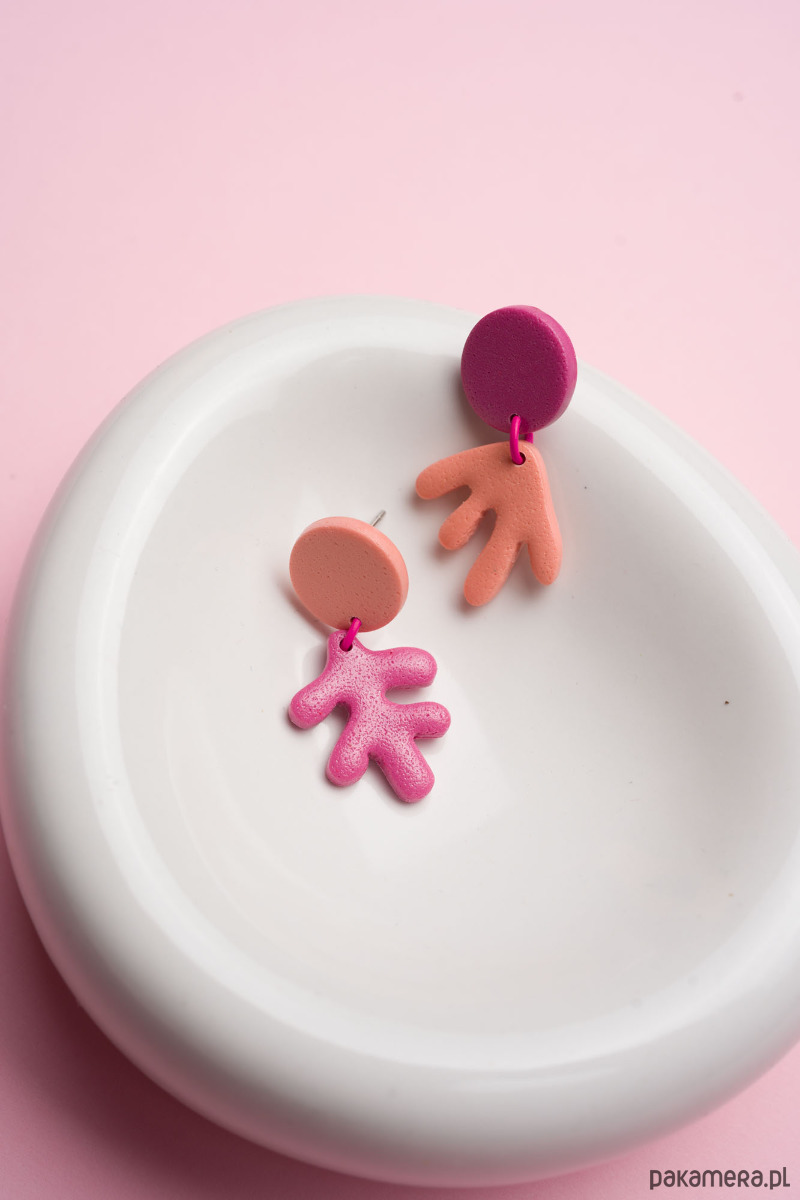 Wiszące kolczyki inspirowane twórczością Henri Matisse- MINI WERSJA. Każdy element jest wykonany, wycinany i szlifowany ręcznie z dbałością o każdy szczegół.