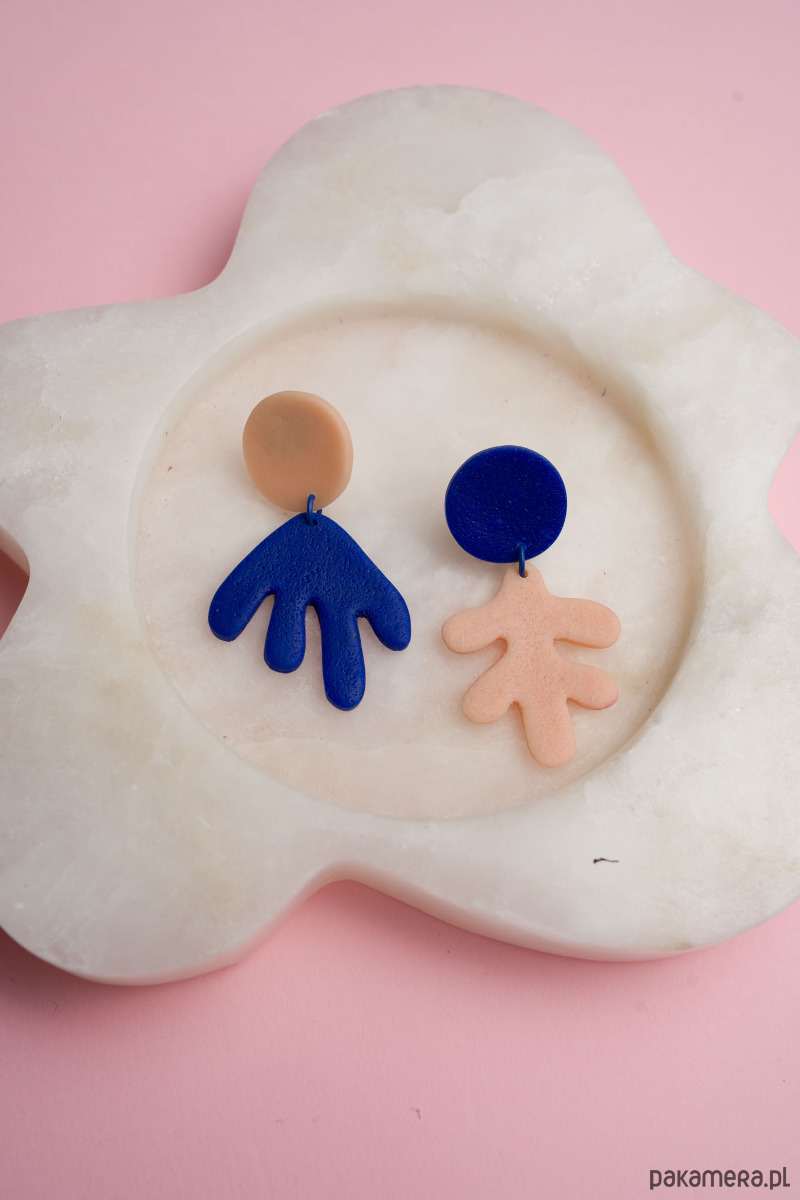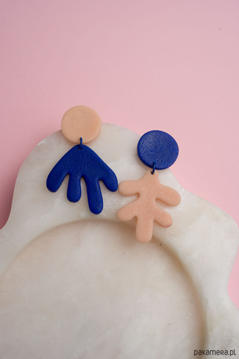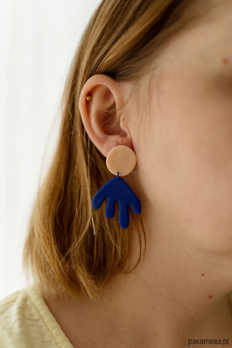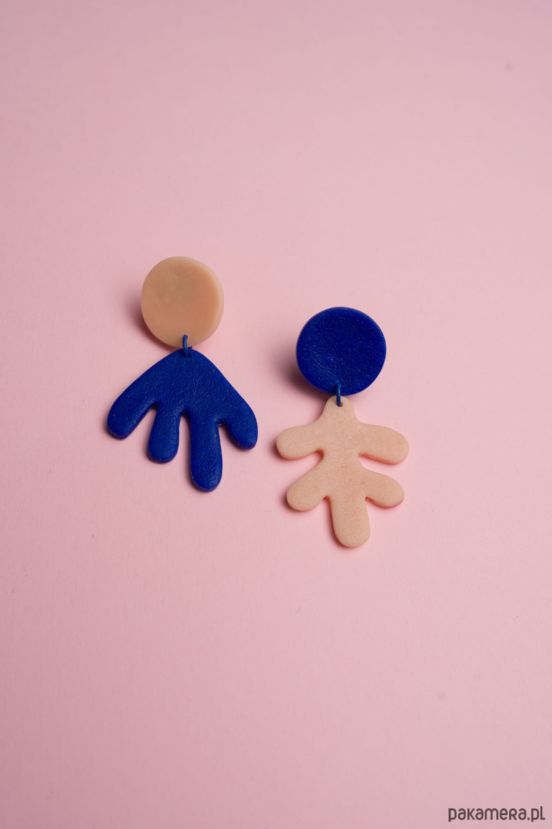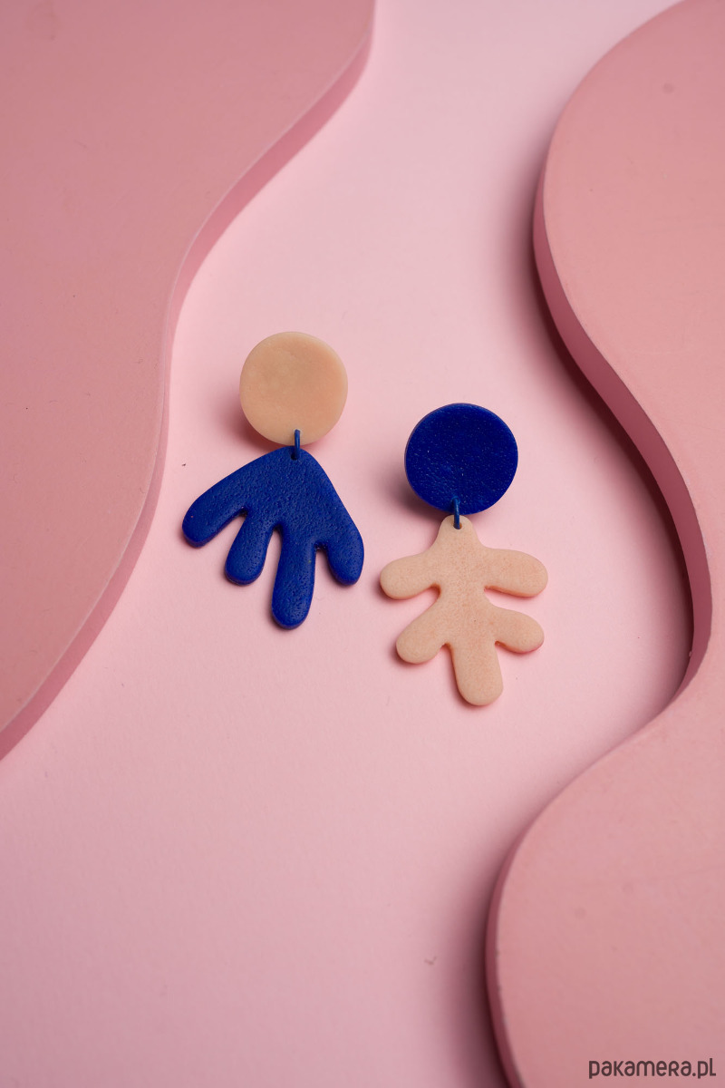 Wiszące kolczyki inspirowane twórczością Henri Matisse. Każdy element jest wykonany, wycinany i szlifowany ręcznie z dbałością o każdy szczegół.