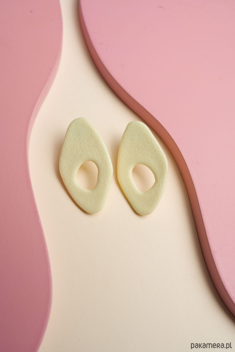 Kolczyki sztyfty w organicznym kształcie KHLOE. Każdy element jest wykonany, wycinany i szlifowany ręcznie z dbałością o każdy szczegół.