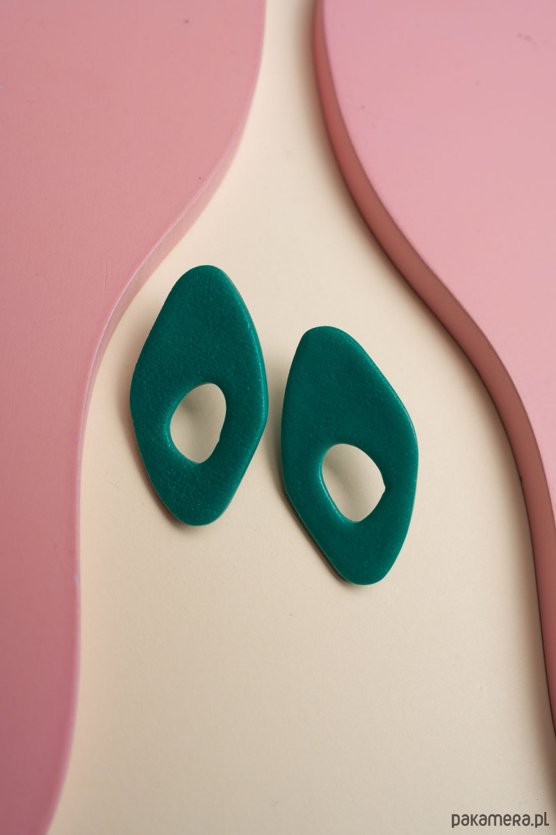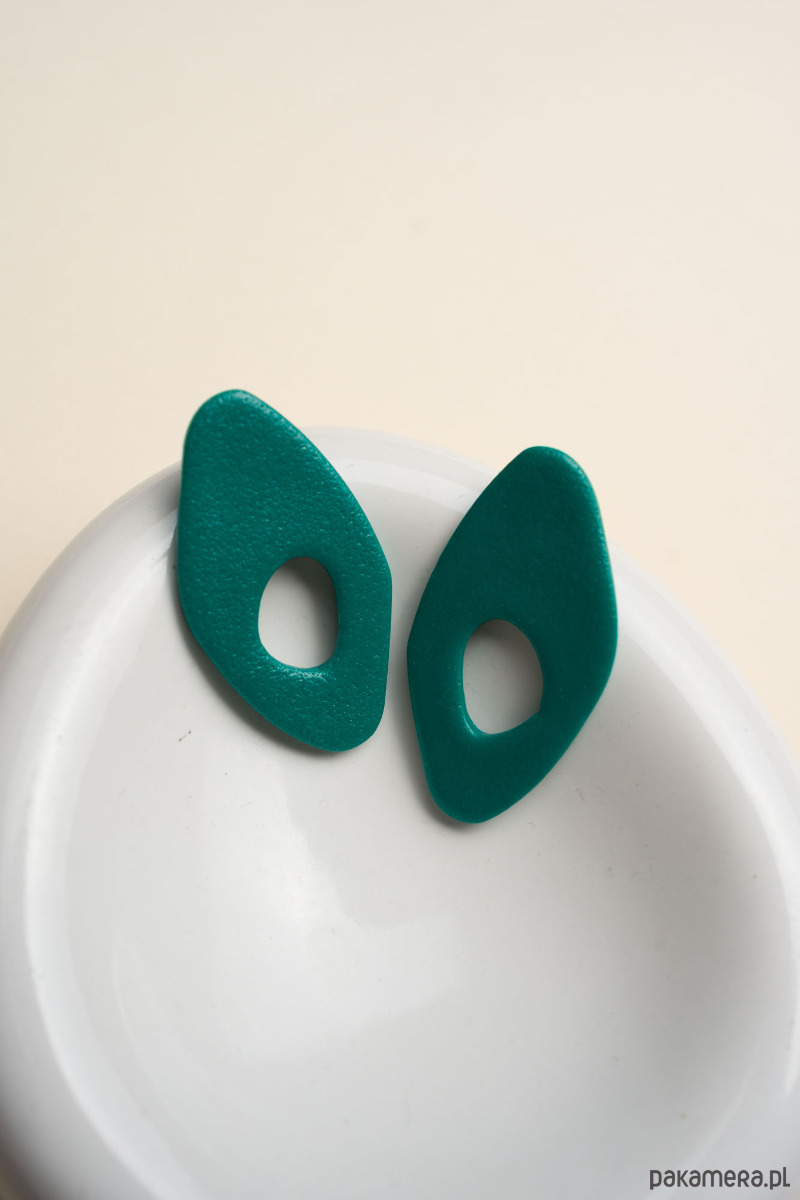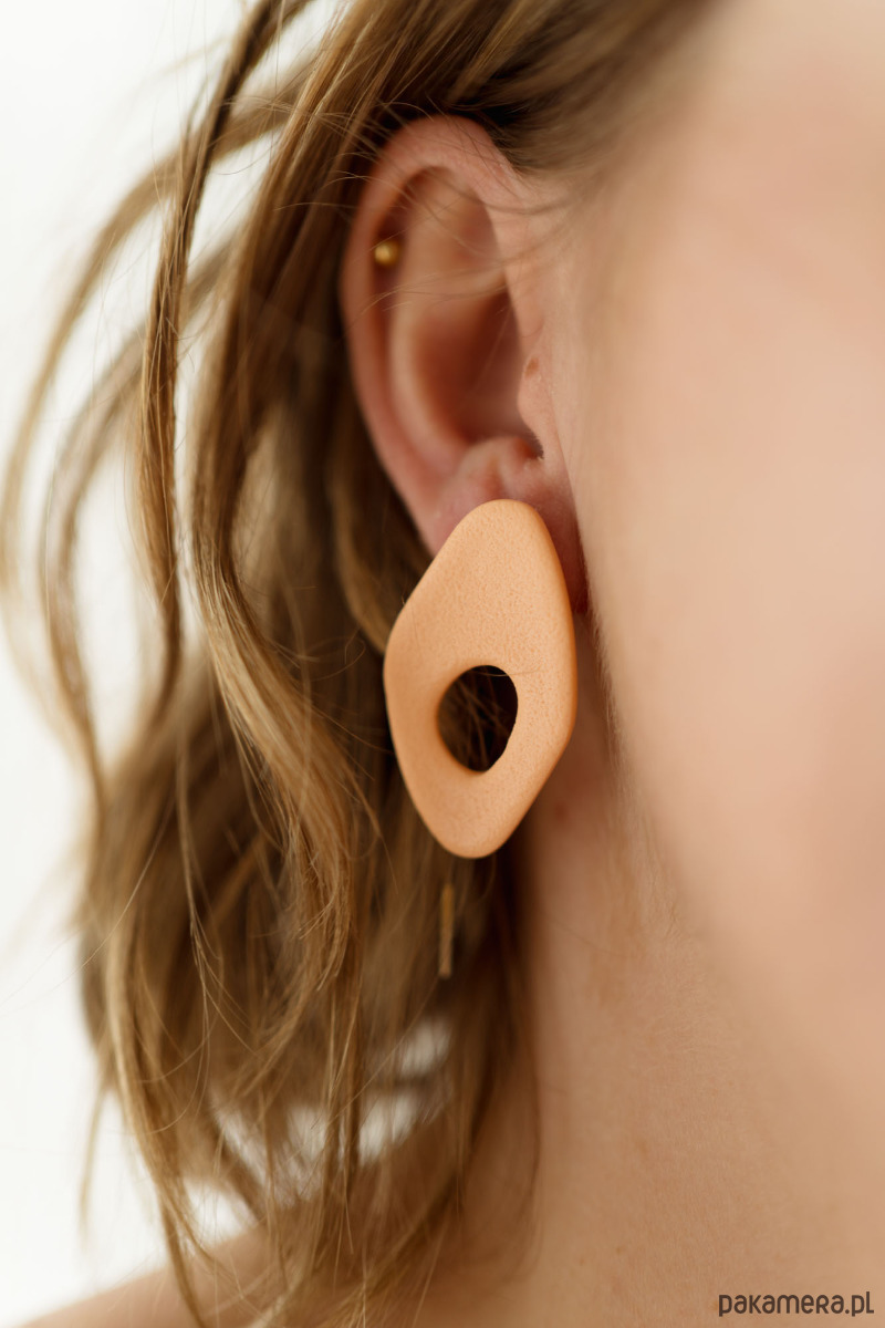 Kolczyki sztyfty w organicznym kształcie KHLOE. Każdy element jest wykonany, wycinany i szlifowany ręcznie z dbałością o każdy szczegół.