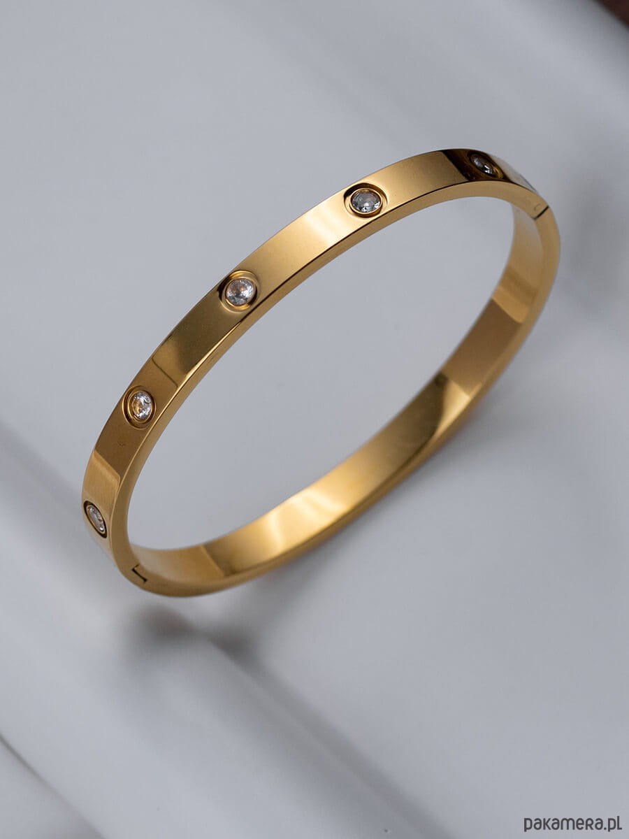 Sztywna złota bransoletka obręcz Fiorella ze stali chirurgicznej pozłacana 18