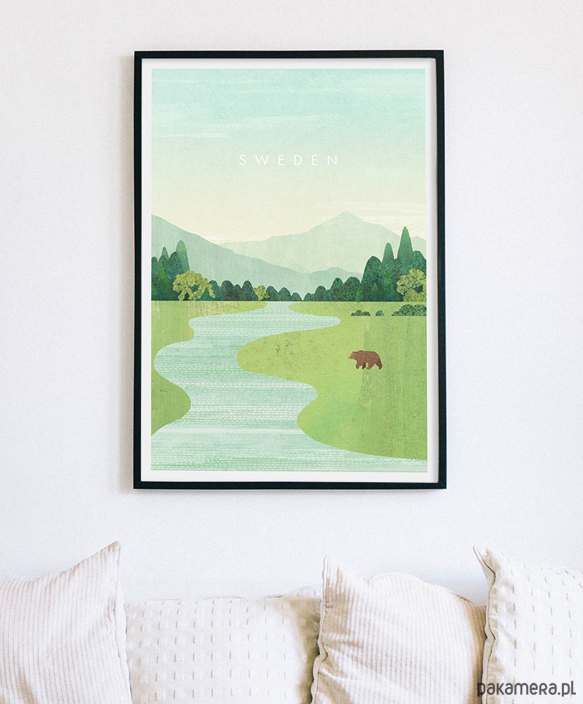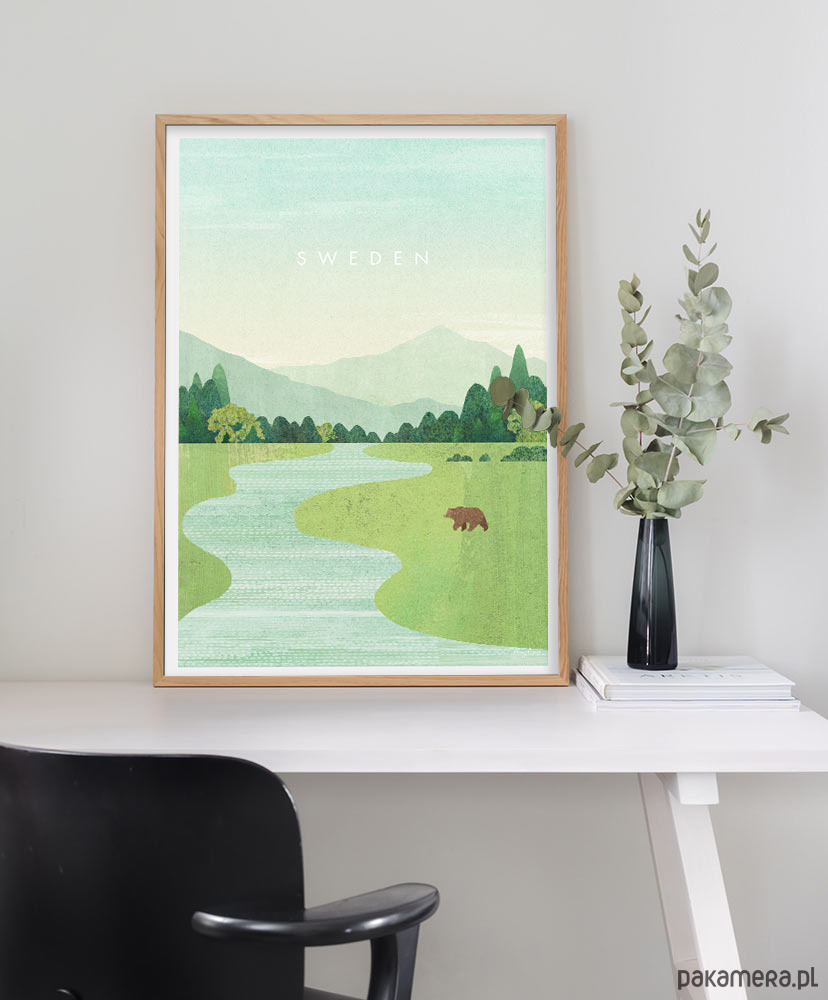 Pełen zieleni plakat z dzikimi terenami Szwecji. Piękna ozdoba ścian dla fanów północy i natury.