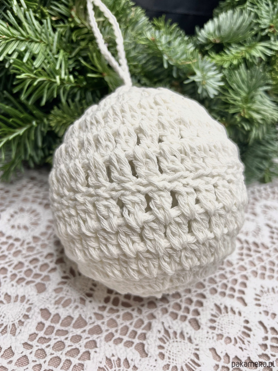 Szydełkowa biała bombka ze 100% bawełny ☃️