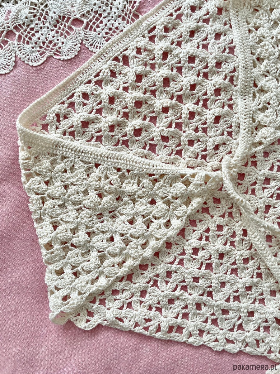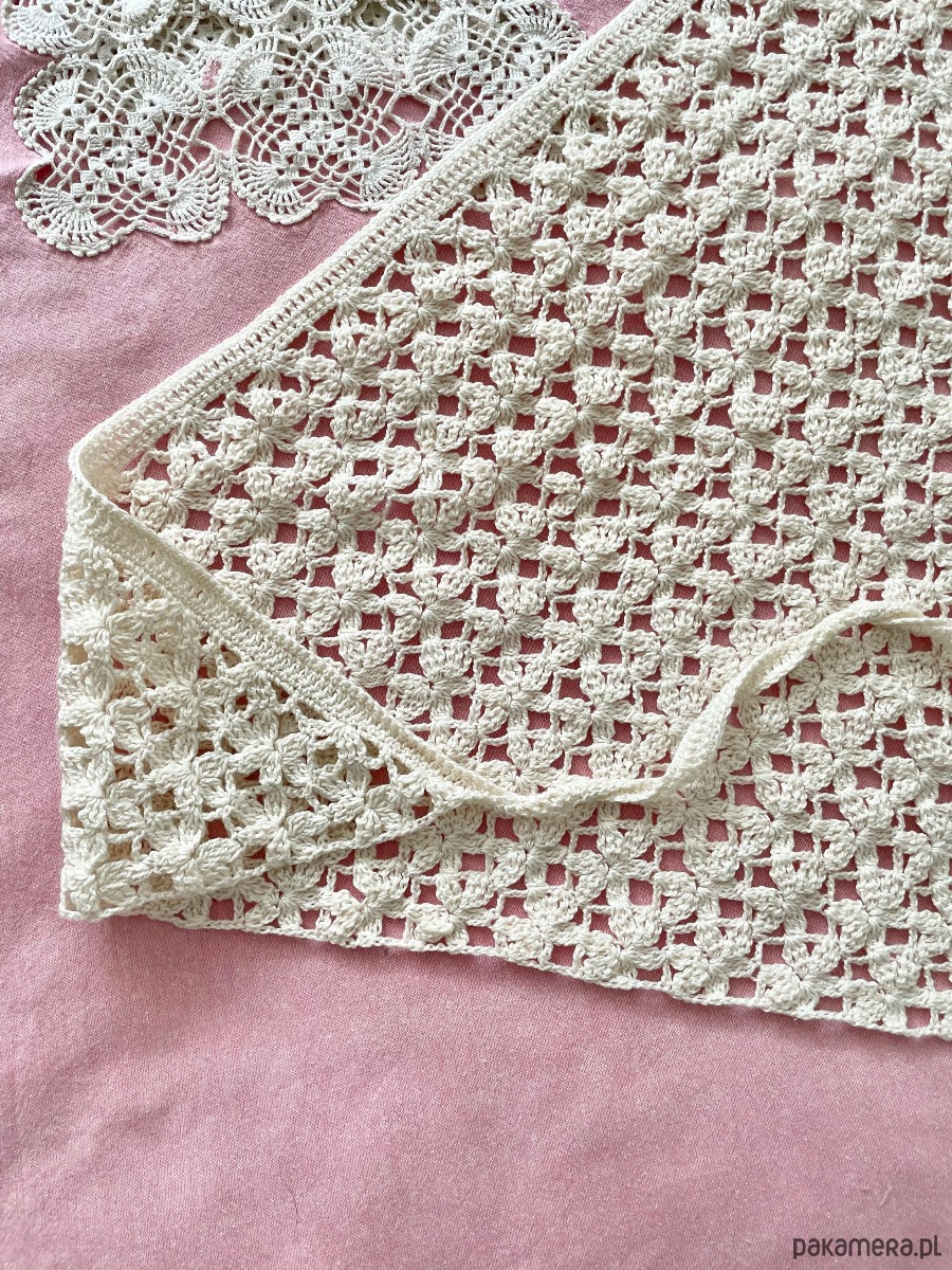 Szydełkowa chusta wykonana z 100% bawełnianego kordonka najwyższej jakości w kolorze kremowym/złamanej bieli.