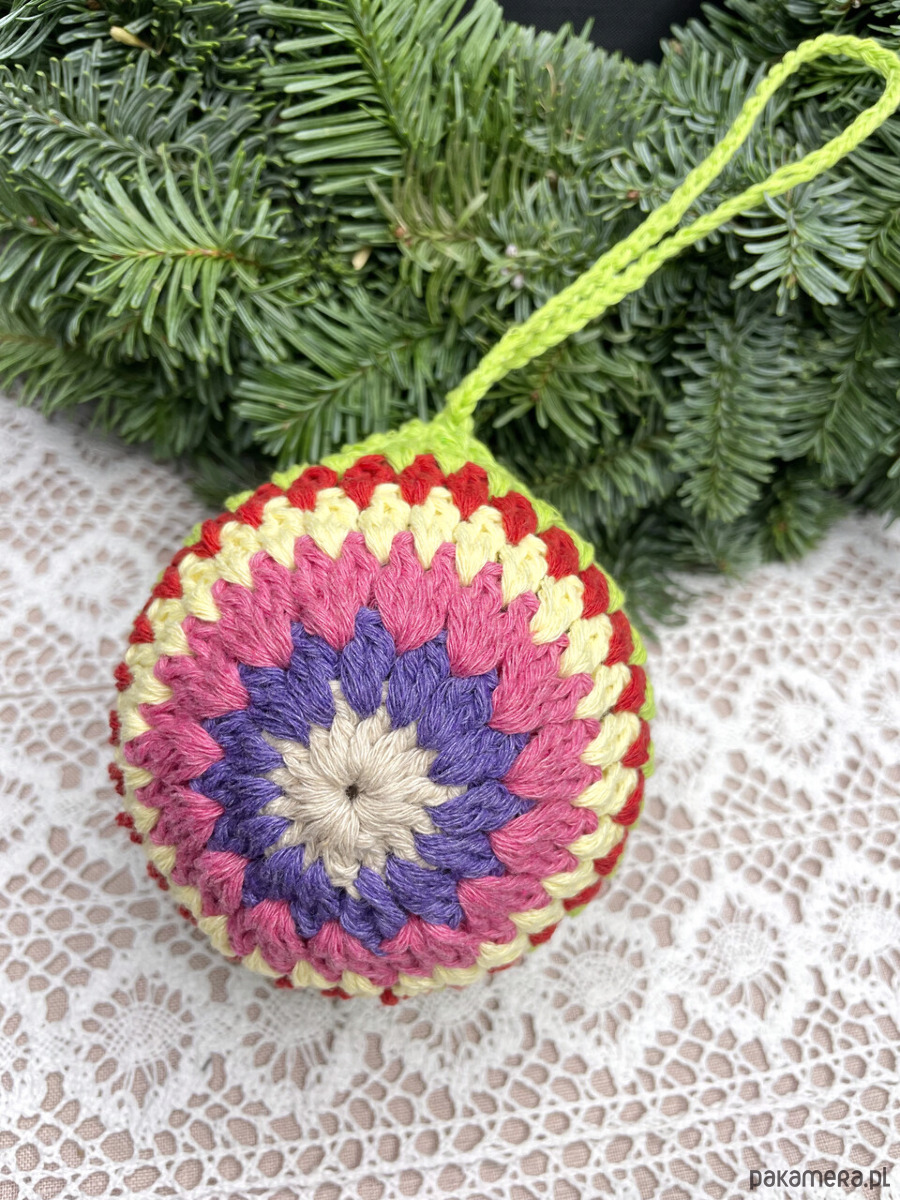 Szydełkowa kolorowa bombka ze 100% bawełny ☃️
