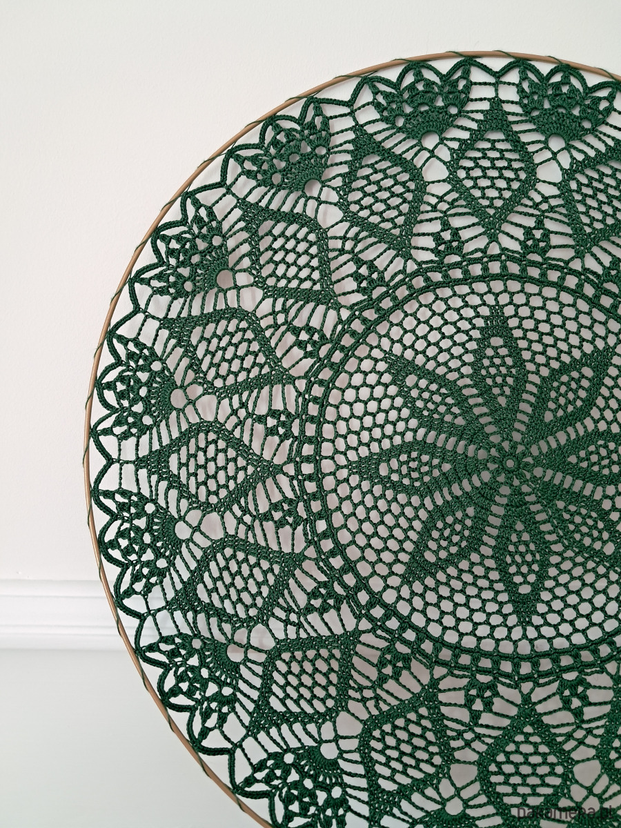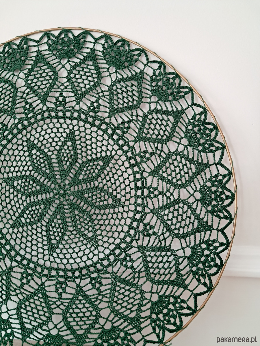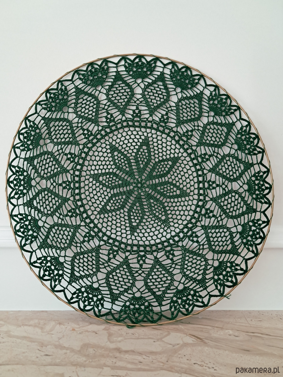 Piękna, unikatowa ozdoba wykonana szydełkiem z wysokiej jakości bawełnianego sznurka. Rozpięta na solidnym metalowym kole w kolorze złotym (średnica 40 cm). Utrzymana w klimacie boho i vintage - idealna do salonu, sypialni, pokoju dziecka lub jako wyjątkowy prezent.