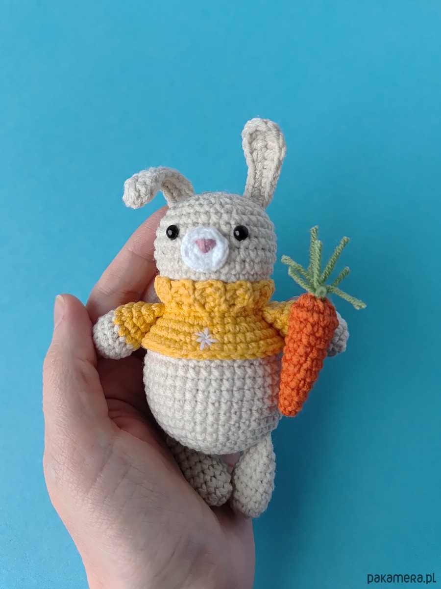 Miękki, przytulny króliczek wykonany ręcznie na szydełku z mieszanki bawełny i akrylu.