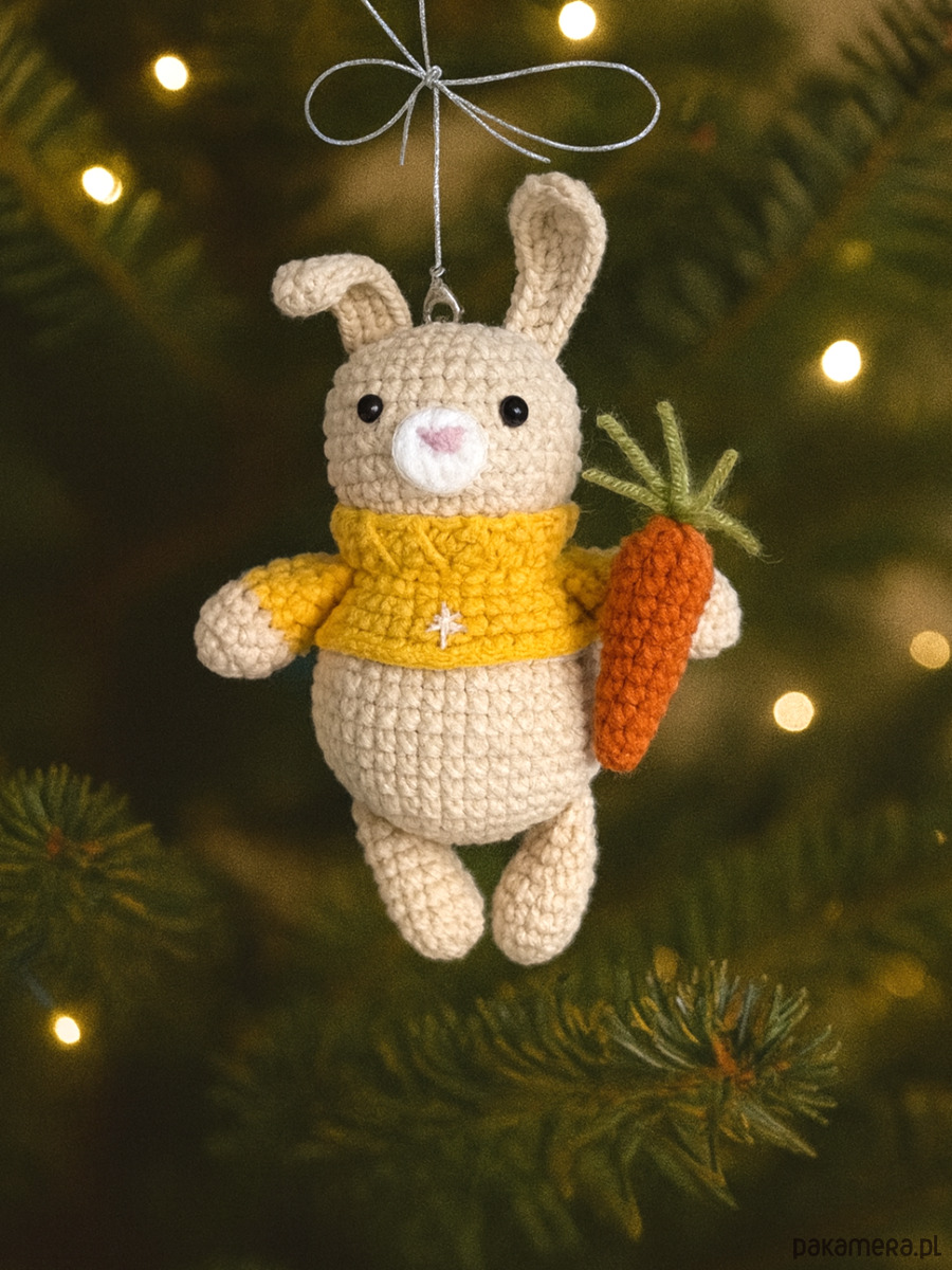 Ręcznie robiony króliczek — urocza dekoracja, brelok lub zawieszka na choinkę