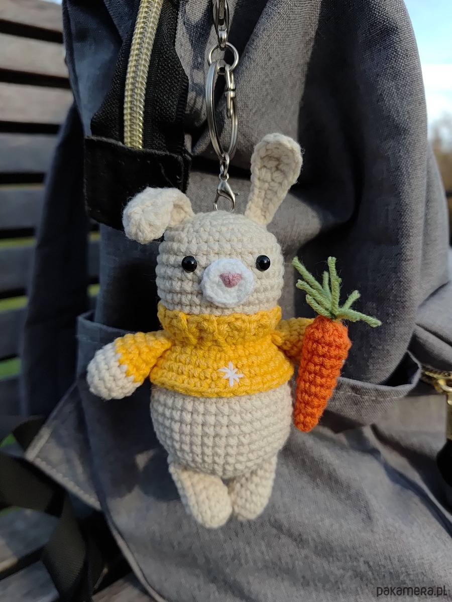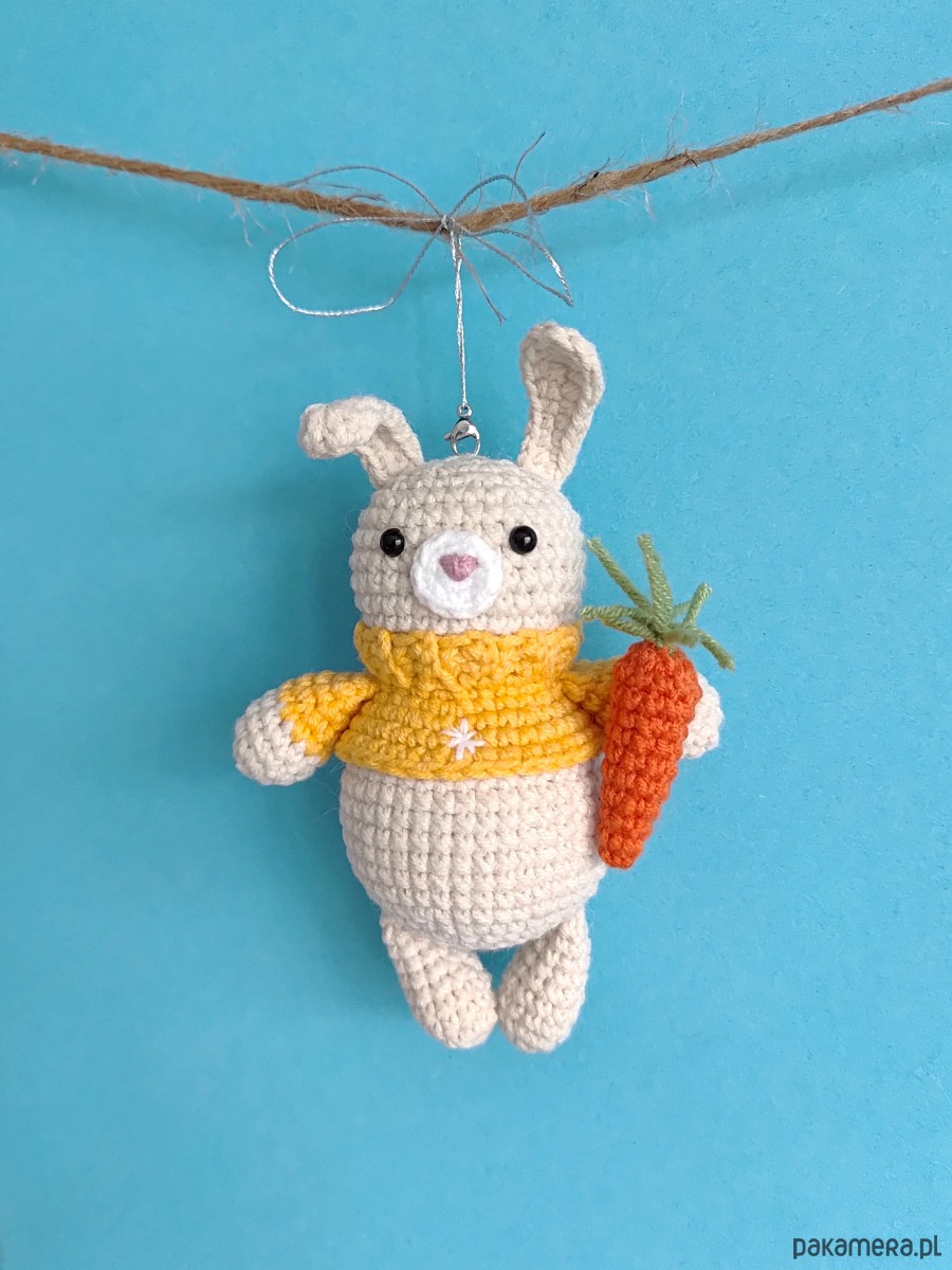 W zestawie znajduje się karabińczyk, który pozwala zawiesić króliczka tam, gdzie tylko chcesz.