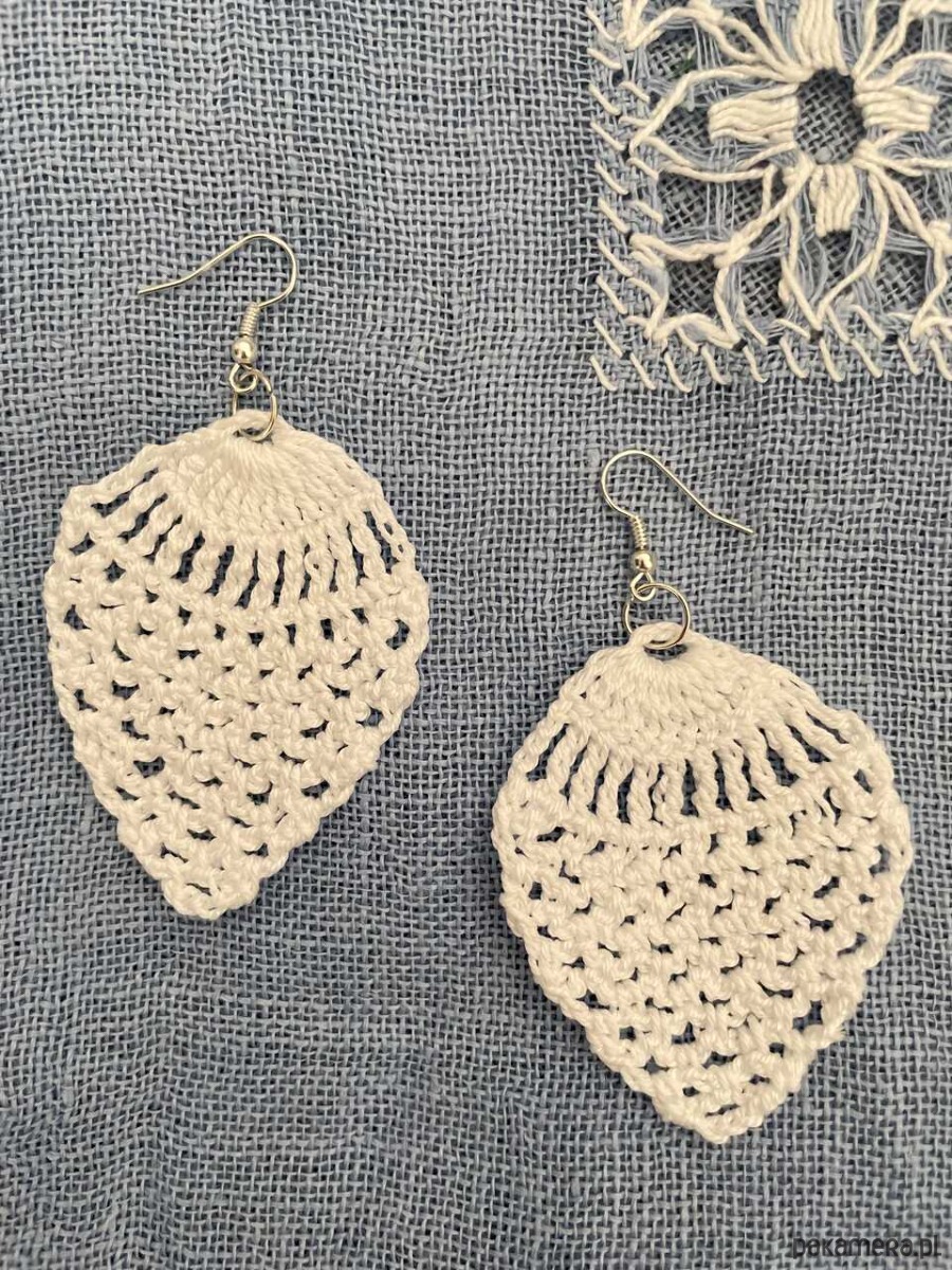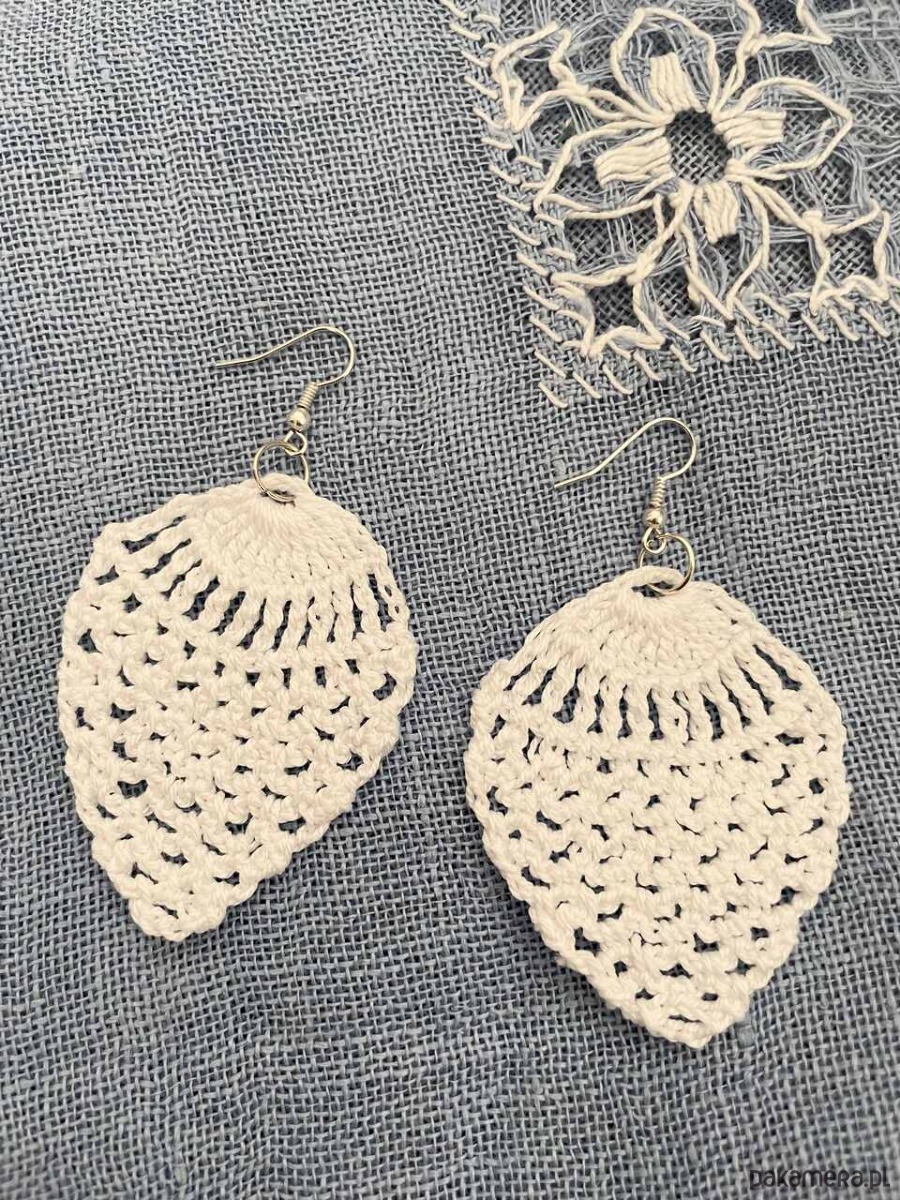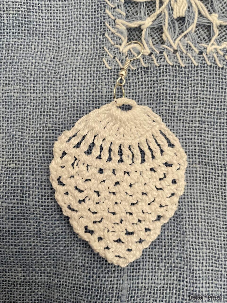 Szydełkowe kolczyki wykonane z bawełnianego białego cienkiego kordonka.