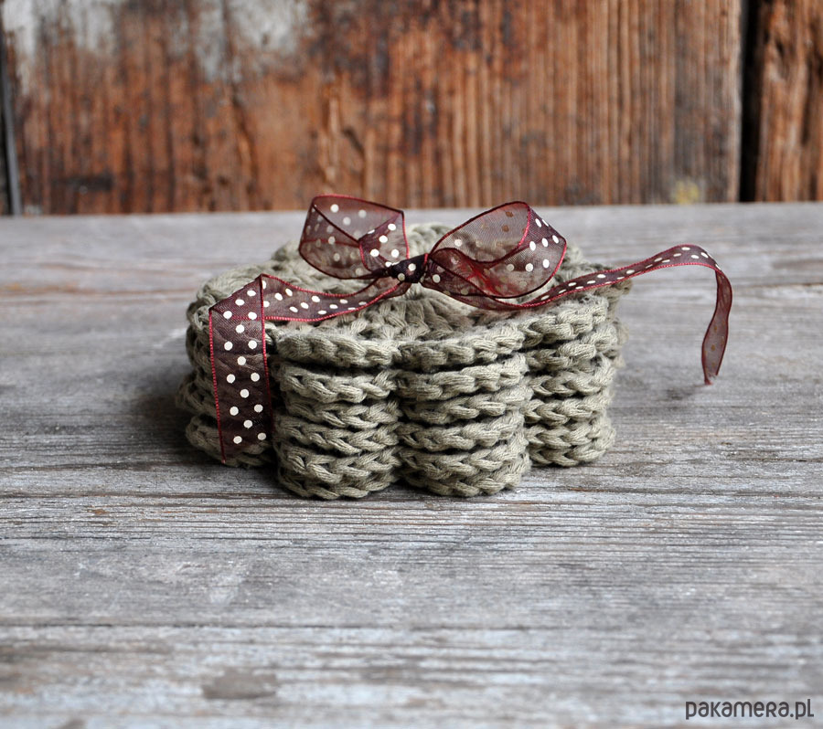 Wyjątkowe podkładki pod kubeczki wykonane szydełkiem z bawełny; zabezpieczą Twój stół; umilą codzienną kawkę i popołudniową herbatkę; idealne na prezent; średnica 12cm; w komplecie 6szt; kolor khaki; zapraszam
