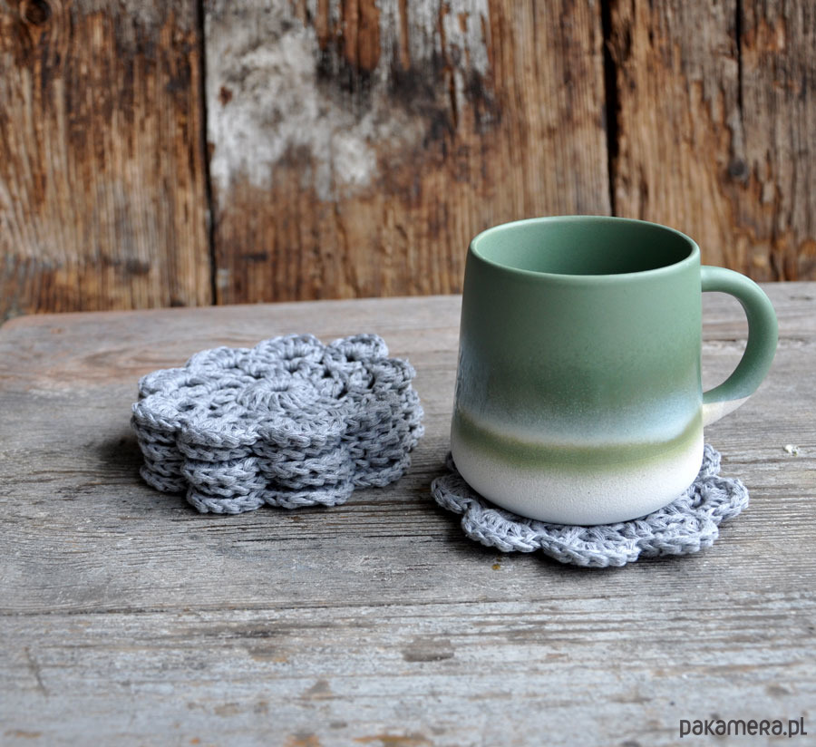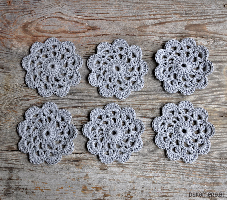 Wyjątkowe podkładki pod kubeczki wykonane szydełkiem z bawełny; delikatnie usztywnione; zabezpieczą Twój stół; umilą codzienną kawkę i popołudniową herbatkę; idealne na prezent; średnica 12cm; podkładki wysyłam w ozdobnym opakowaniu; w komplecie 6szt; kolor szary; zapraszam
