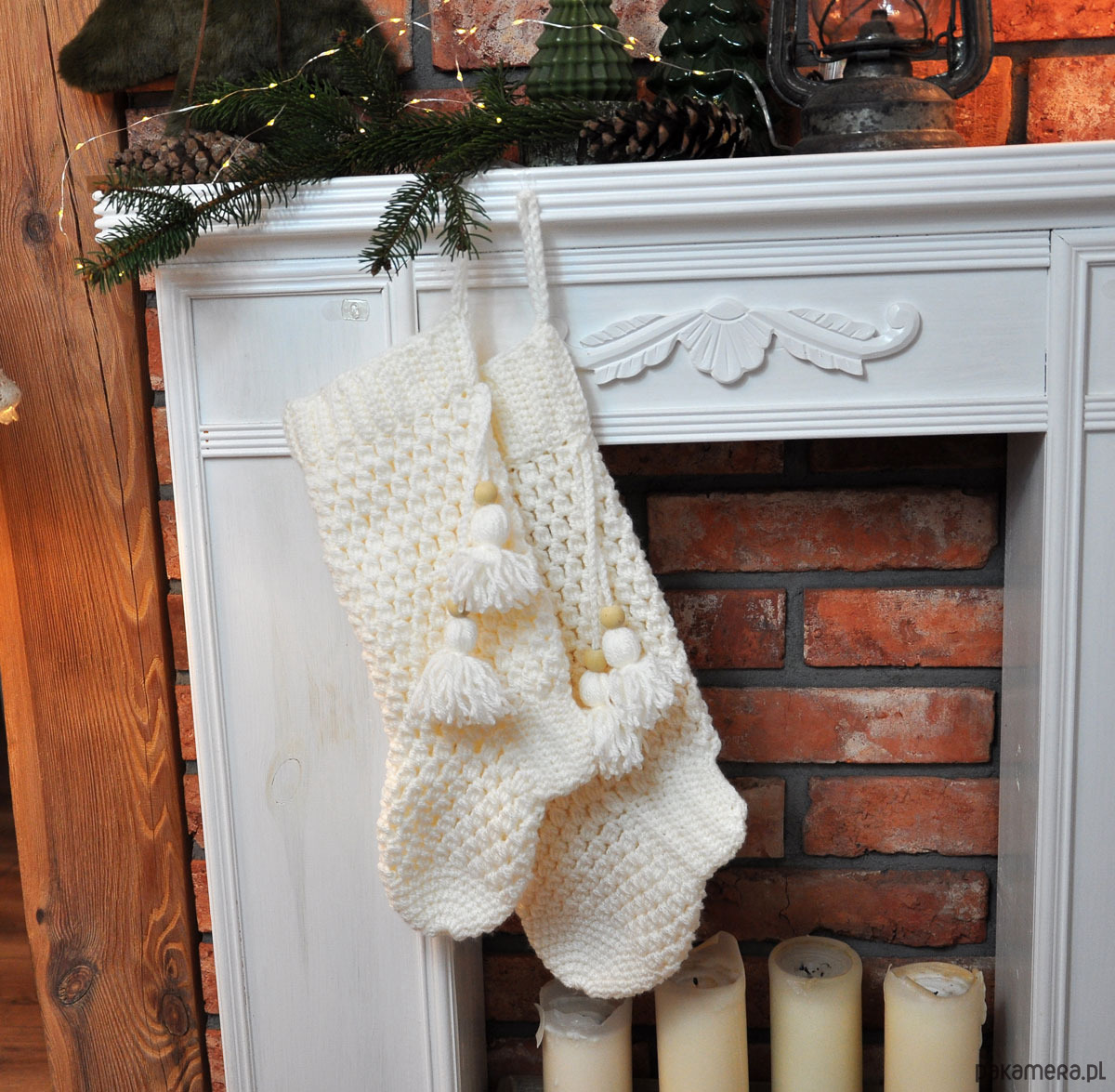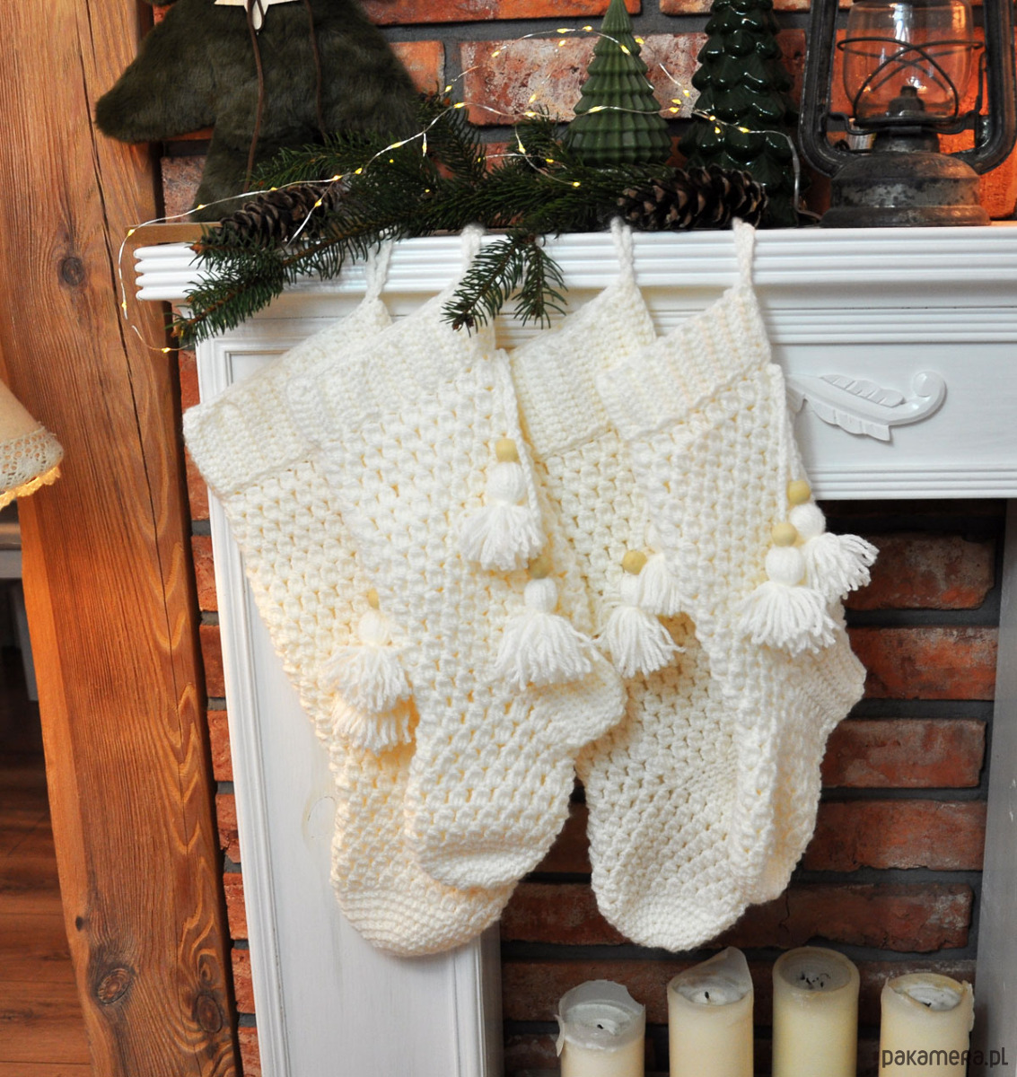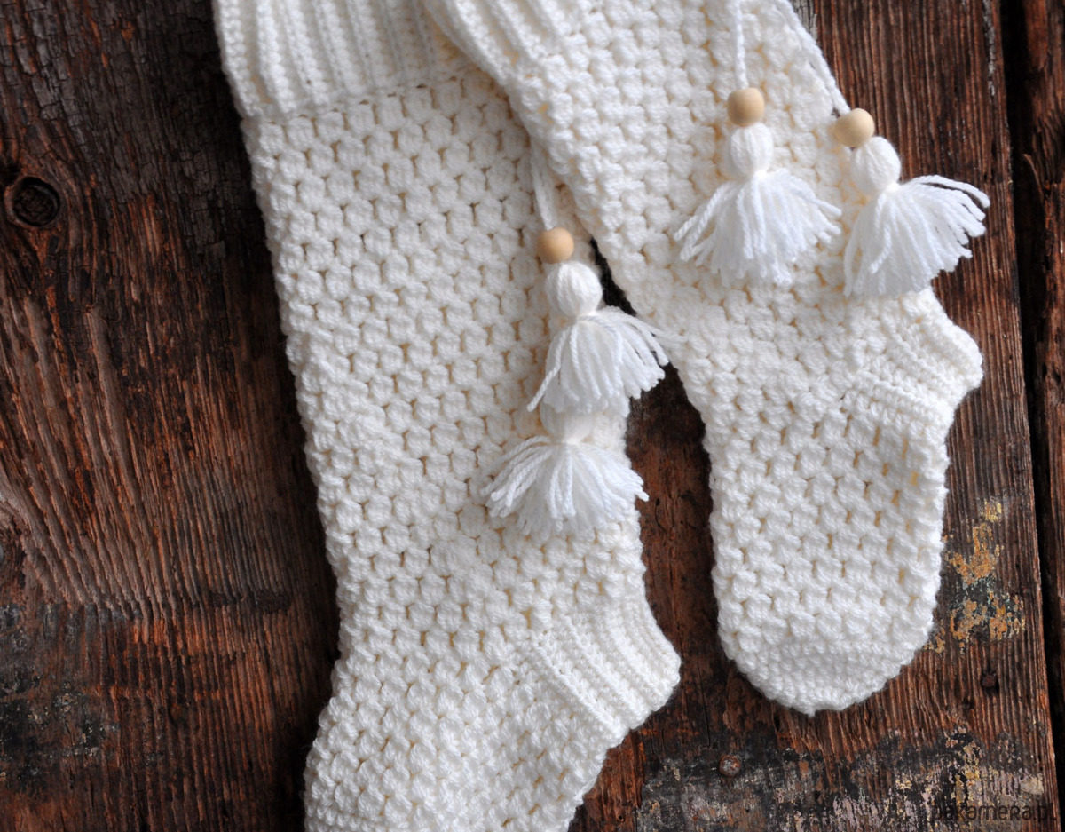 Szydełkowe skarpety na kominek 2szt.