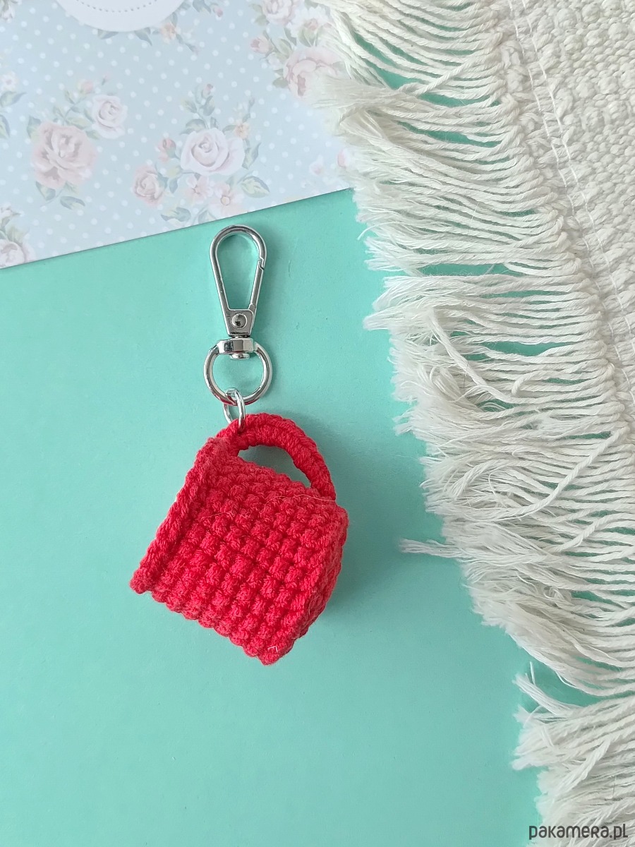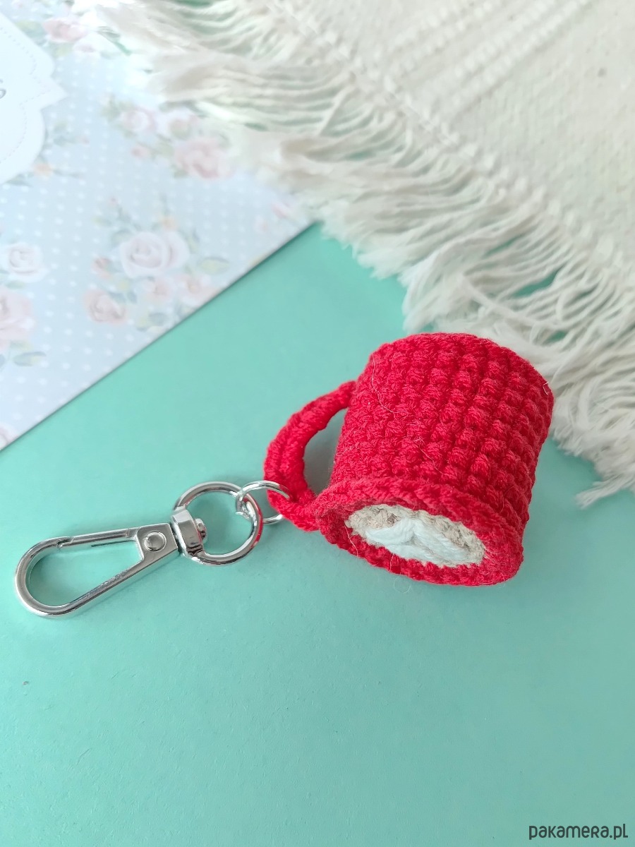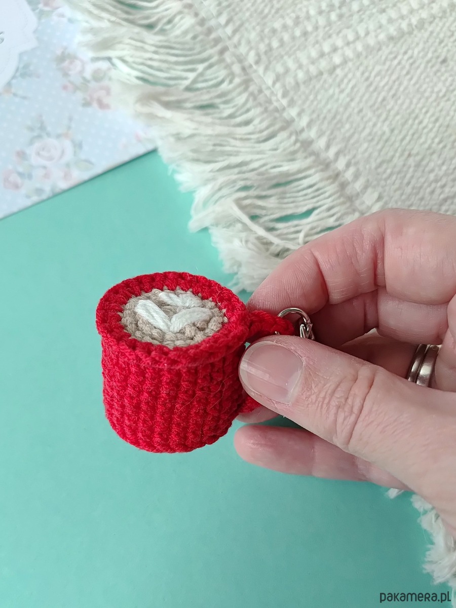 Szydełkowy brelok Czerwona filiżanka cappuccino