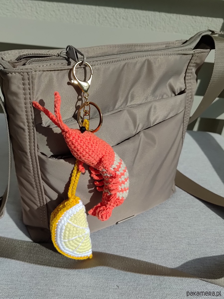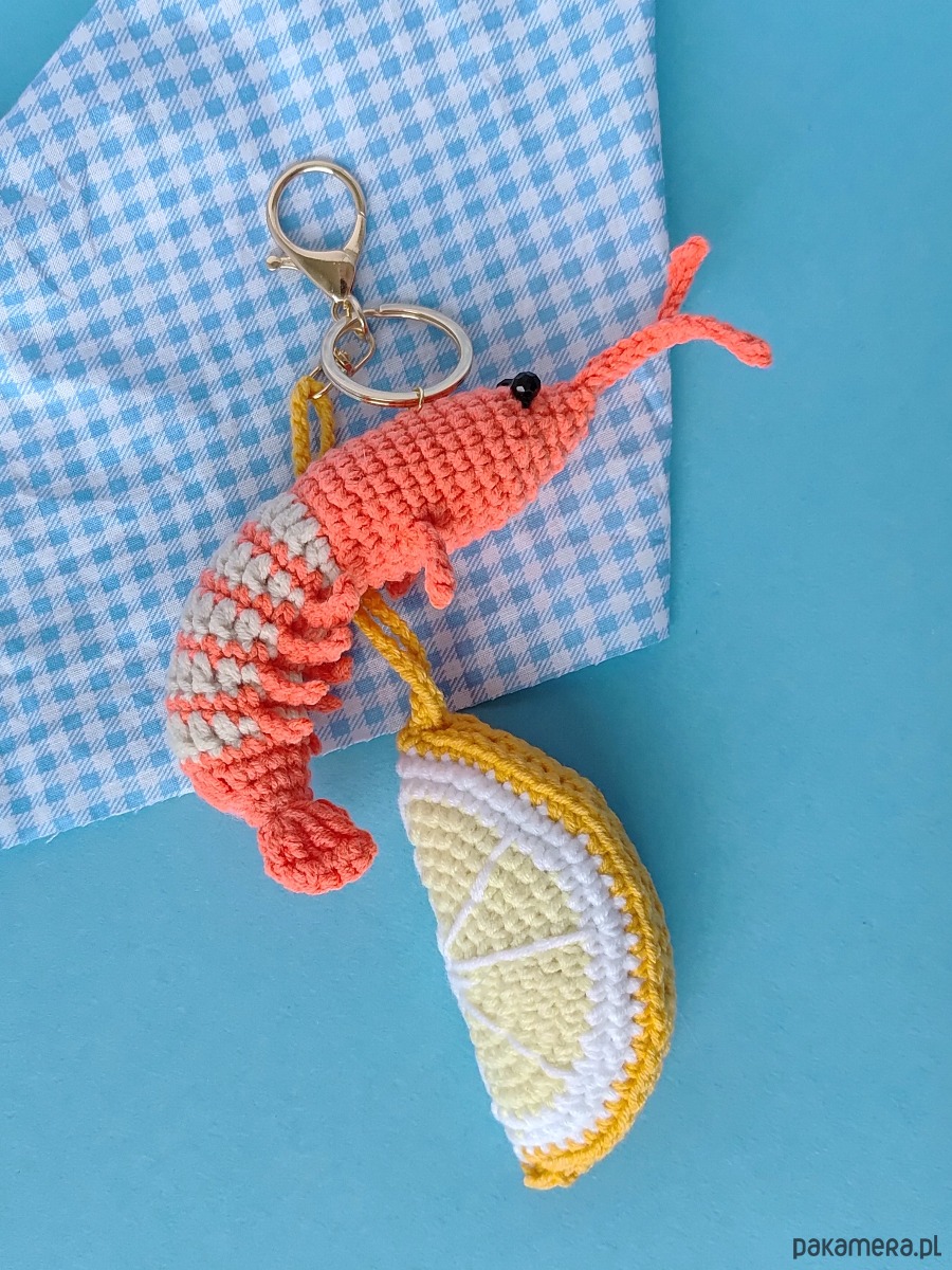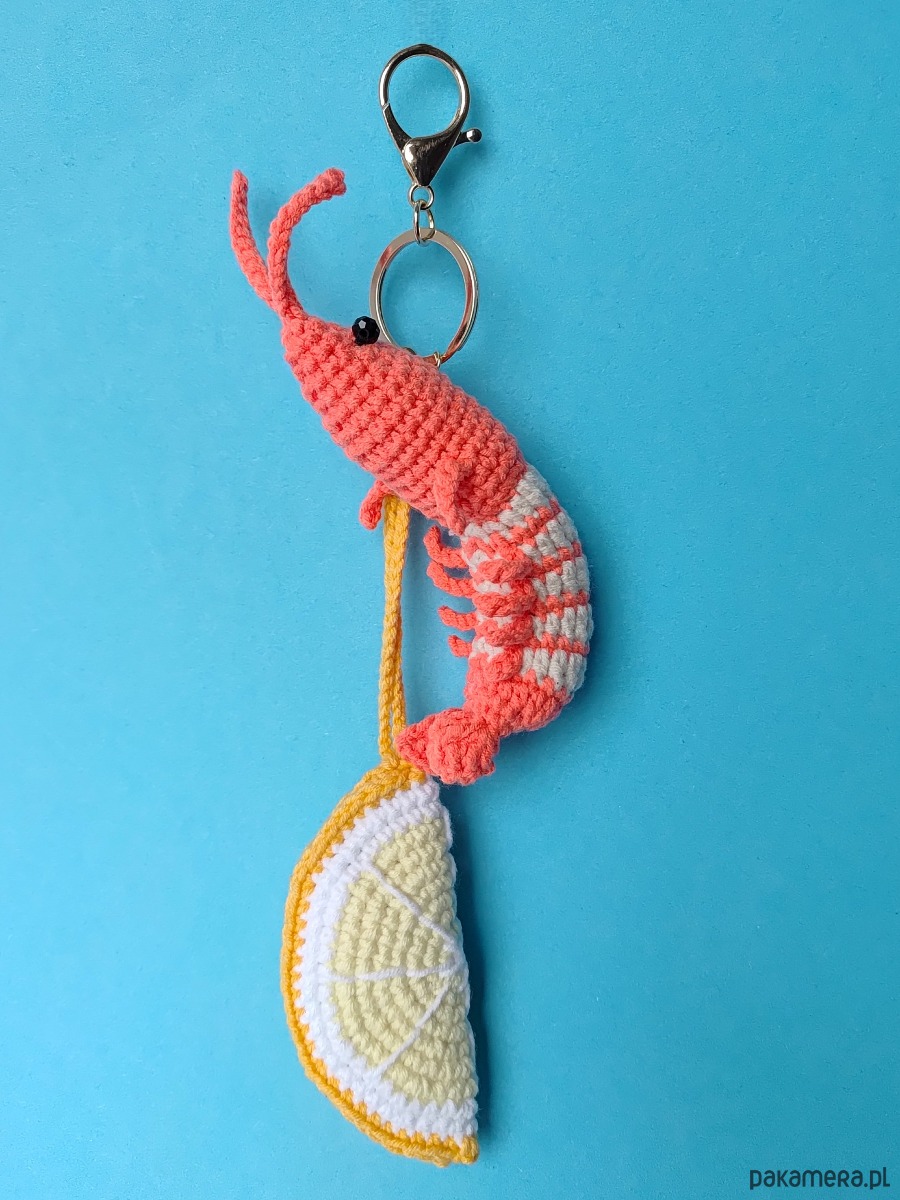 Trochę morskiego klimatu, trochę kuchennego żartu – i oto jest! Ręcznie robiona na szydełku krewetka, która wygląda, jakby właśnie wyskoczyła prosto z talerza… ale zamiast tego postanowiła ozdobić Twoją torebkę lub plecak.