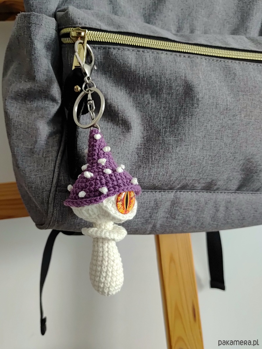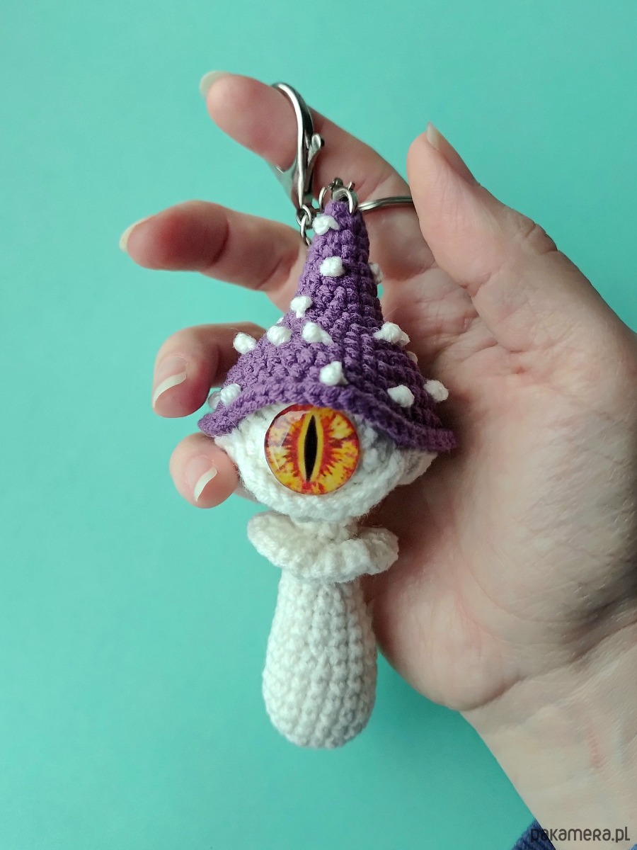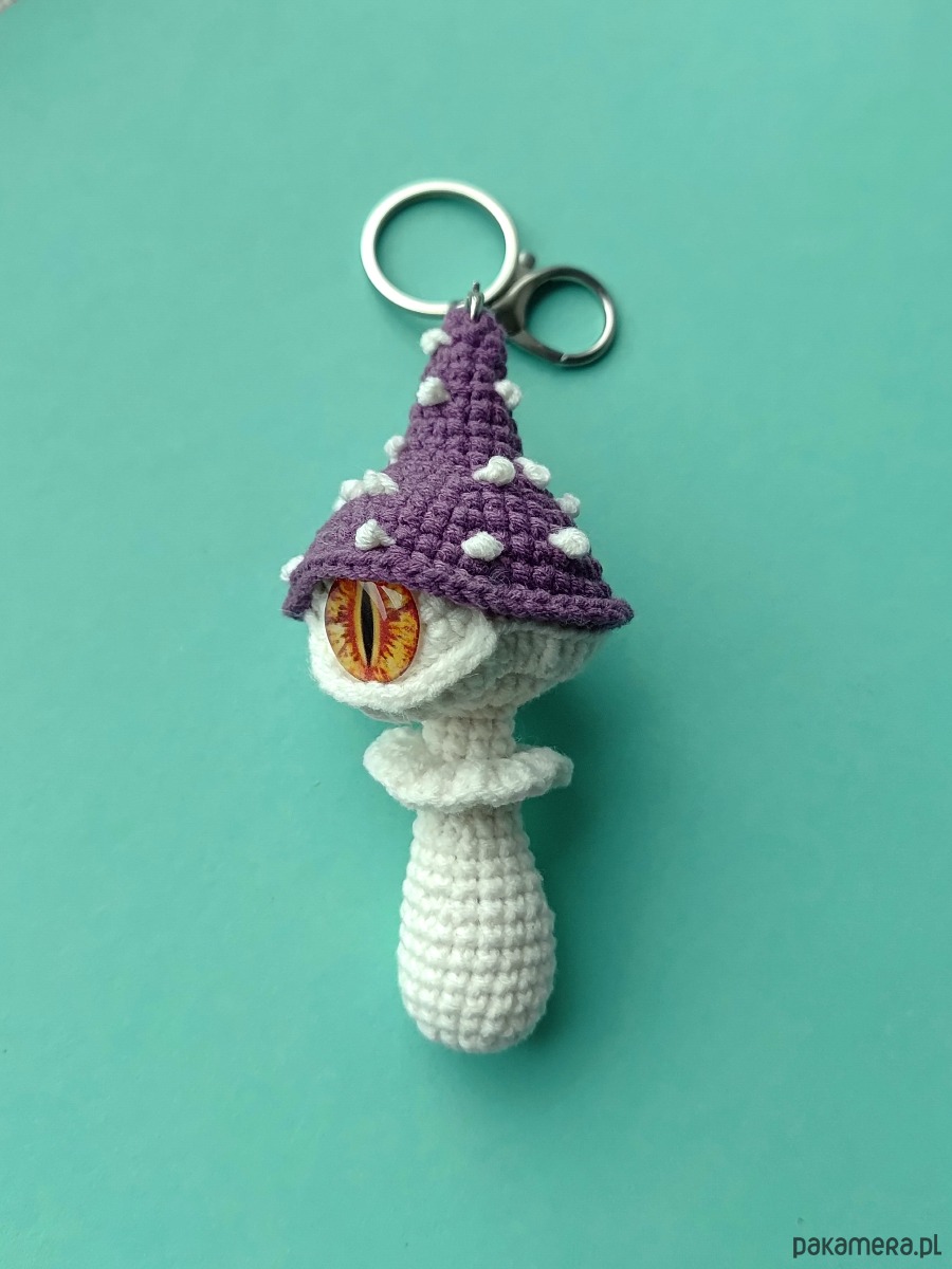 Szydełkowy brelok zawieszka Magiczny grzybek z okiem