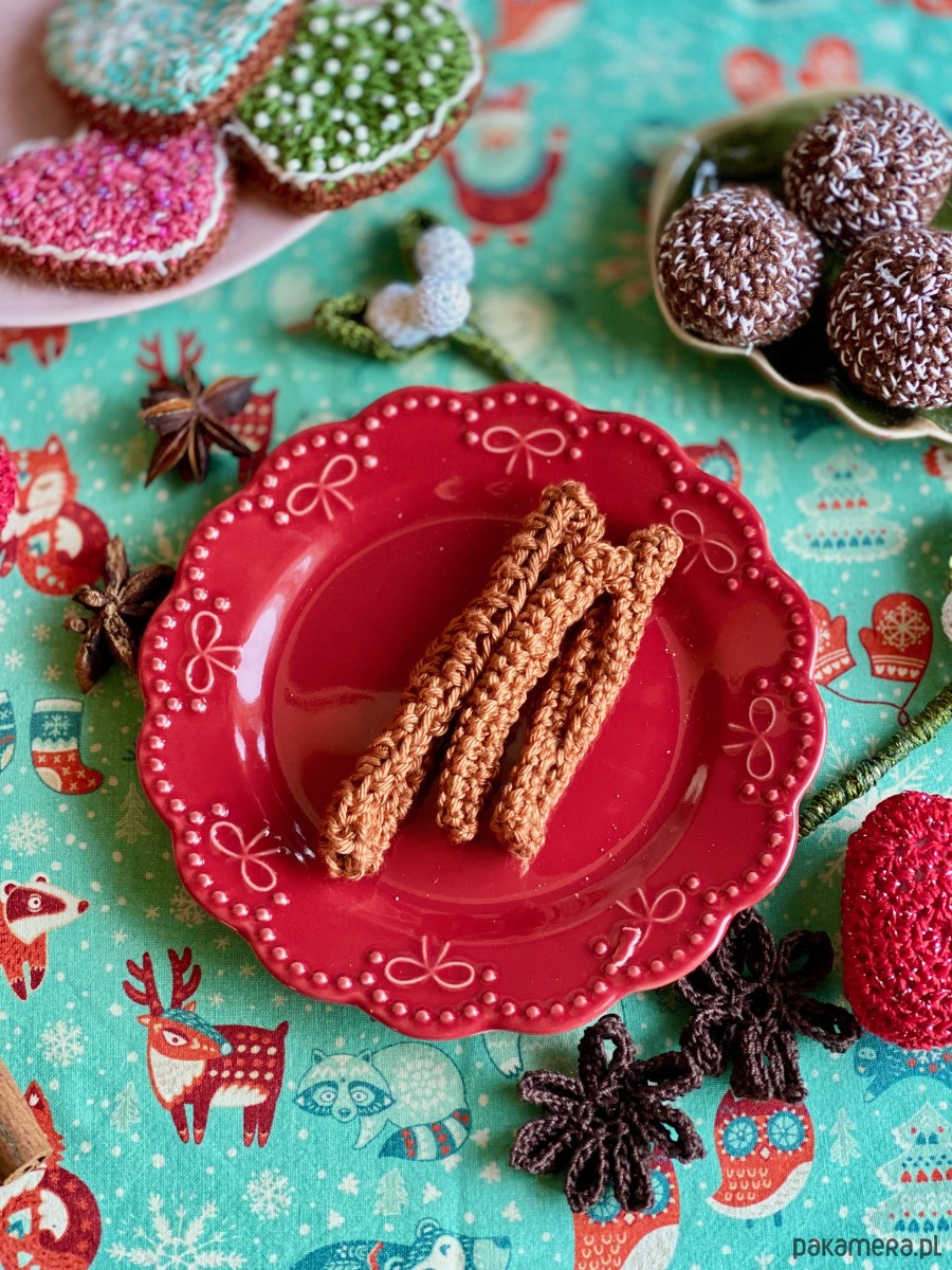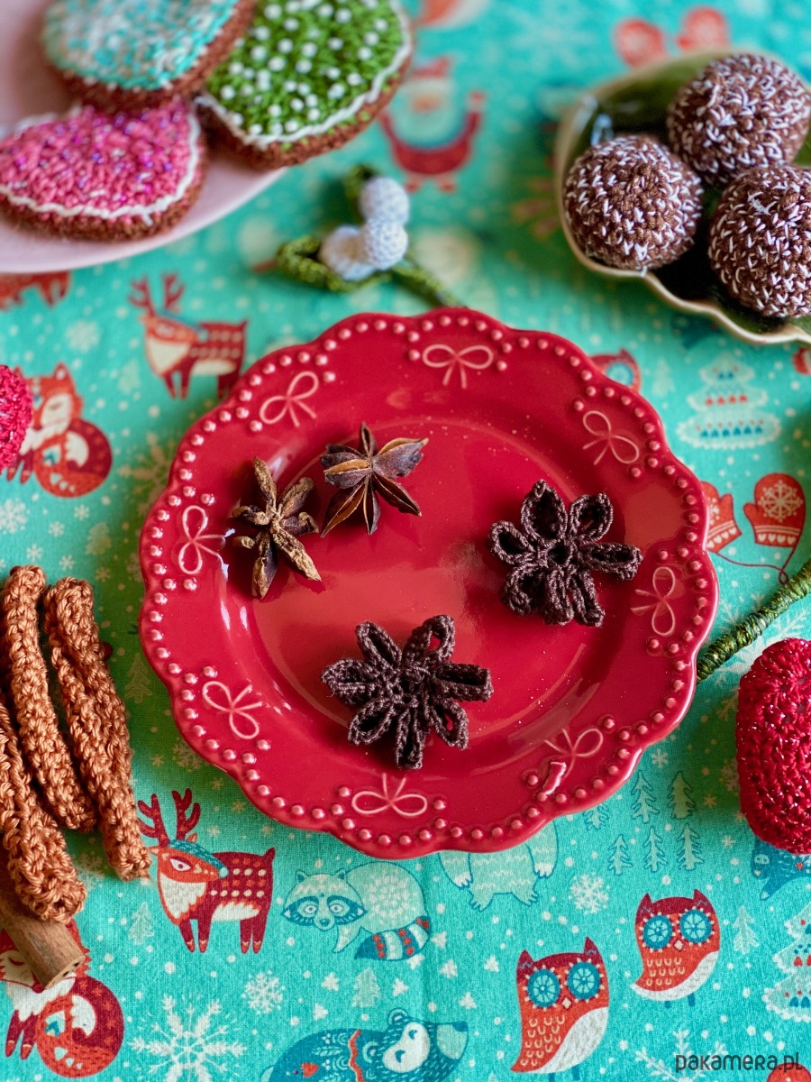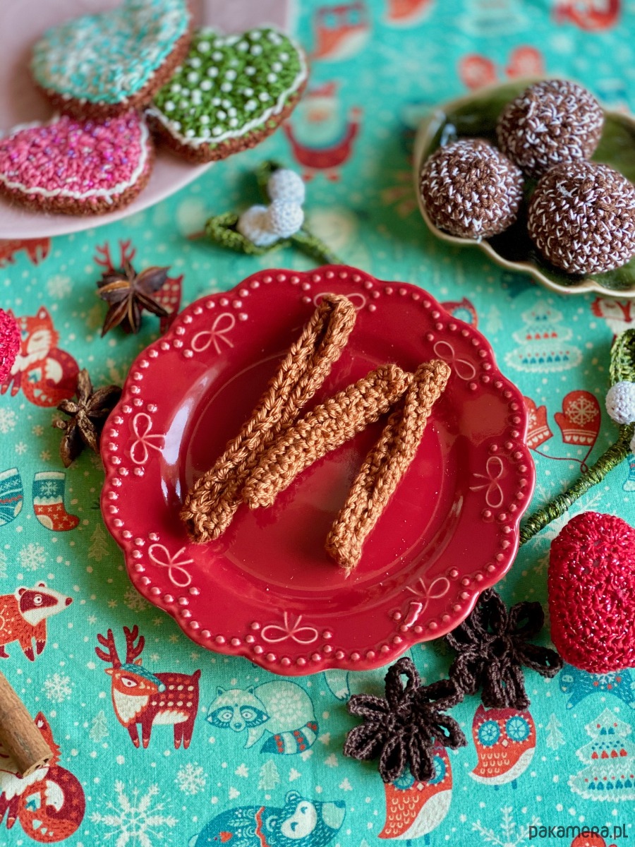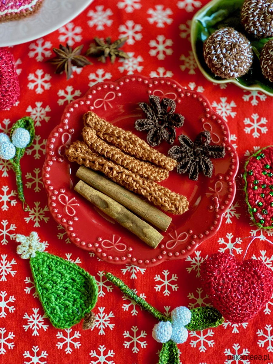 Szydełkowy cynamon i anyż — to wyjątkowy dodatek do Twojej świątecznej aranżacji lub dziecięcej kuchni. Wykonane ręcznie z dbałością o każdy szczegół, idealnie oddają urok prawdziwych przypraw. Doskonale sprawdzą się jako ozdoba świątecznych prezentów, element bożonarodzeniowej dekoracji stołu, a także jako bezpieczna zabawka do zabawy w pieczenie i gotowanie.