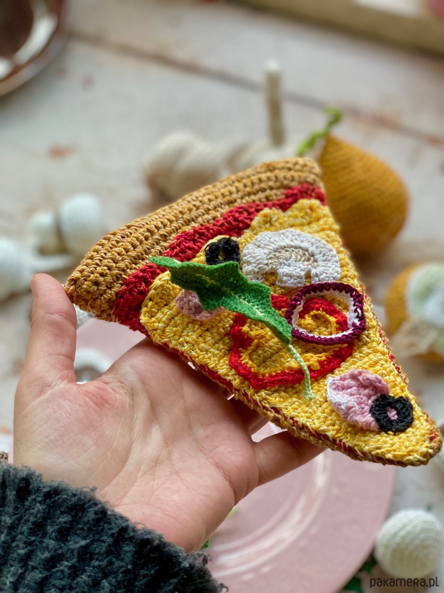 ✔ Kawałek pizzy na szydełku – złocista skórka, sos pomidorowy i roztopiony ser