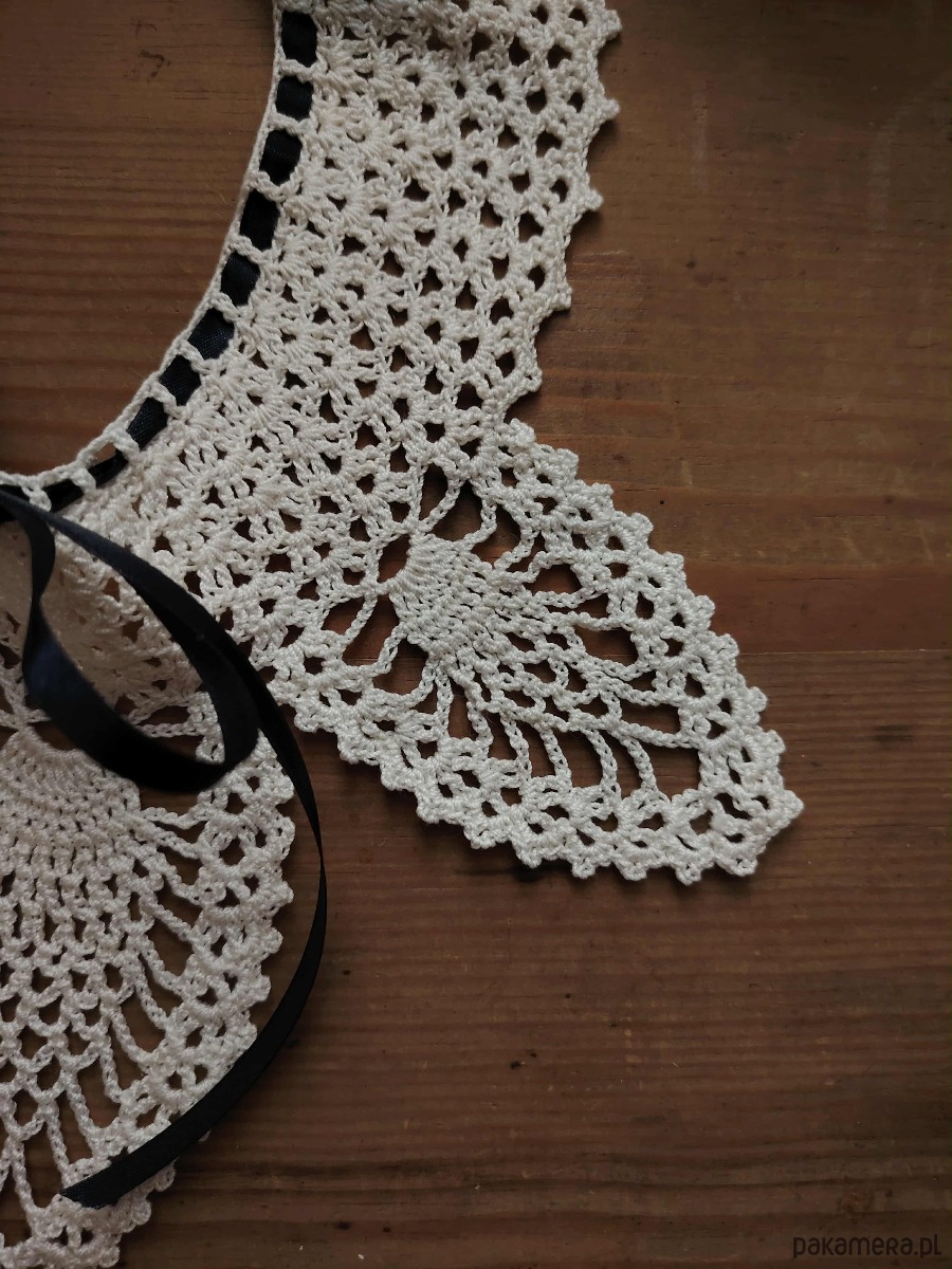 Szydełkowy koronkowy kołnierzyk wzór vintage