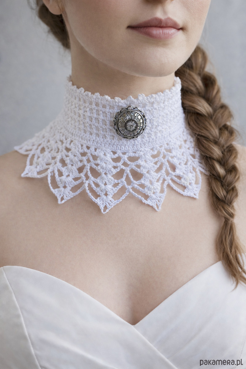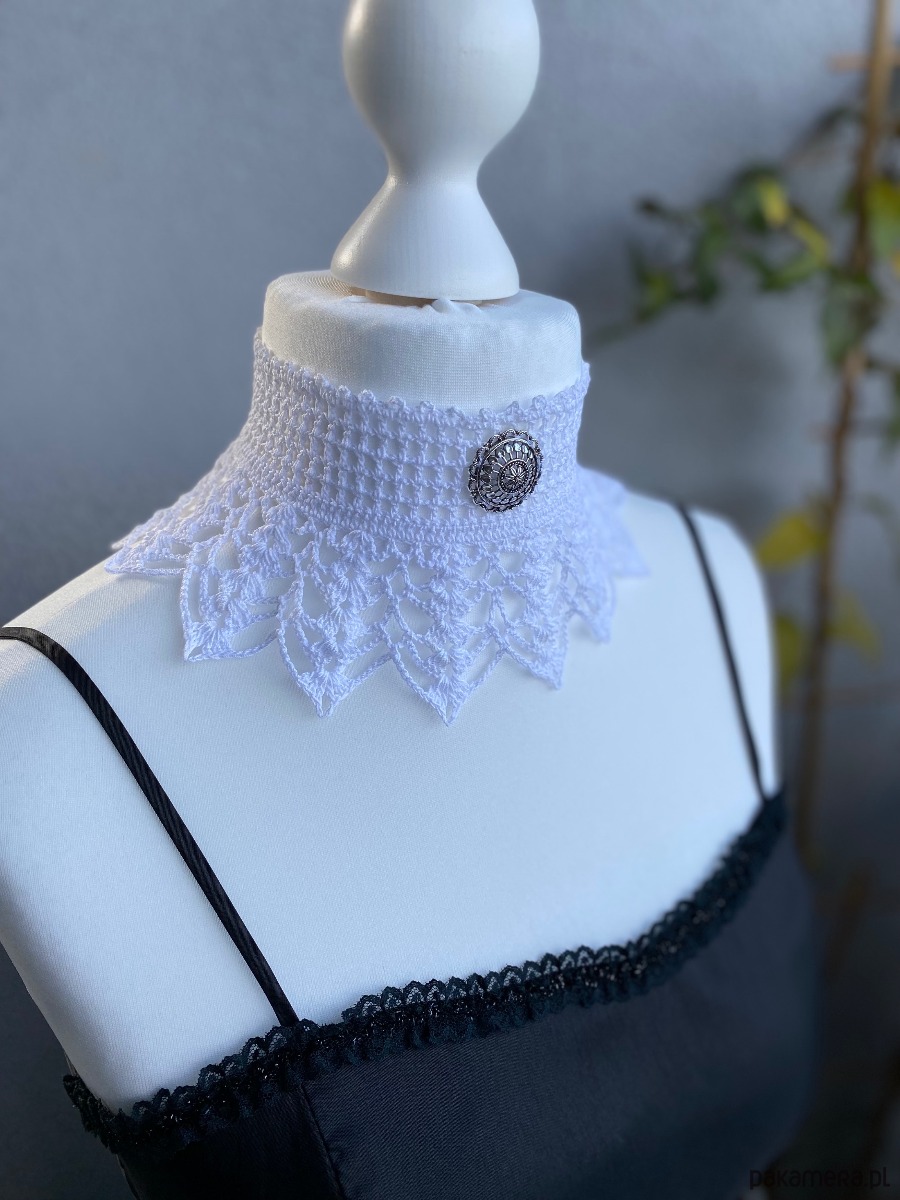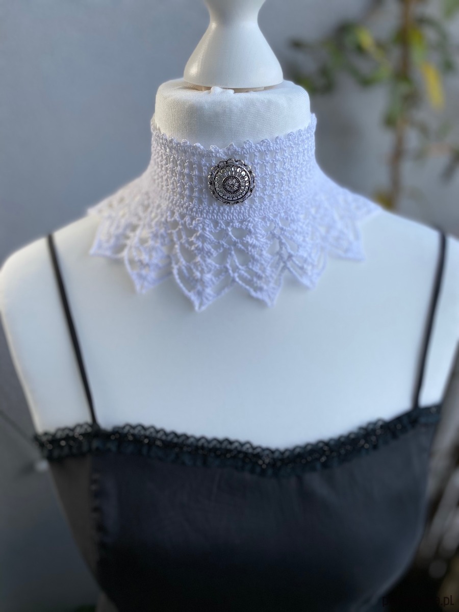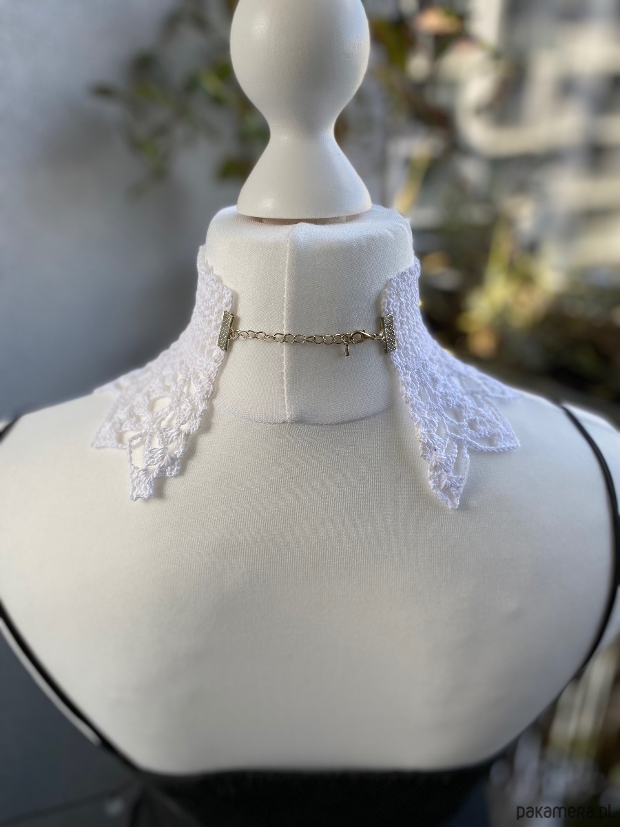 Szydełkowy koronkowy naszyjnik biały
