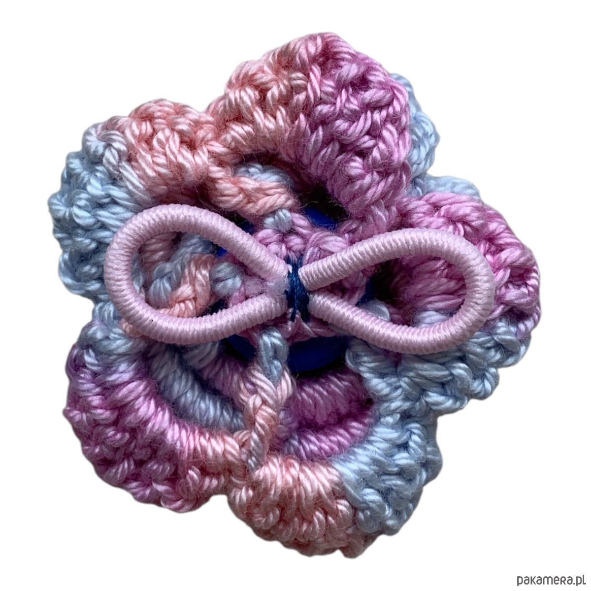 Zrobiony na szydełku ze 100% bawełny i przyszyty do gumki.