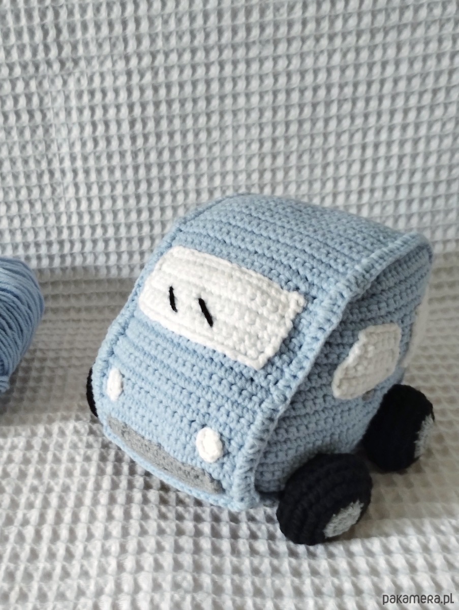 Aby samochodzik był łatwy w utrzymaniu czystości jest wykonany z włóczki zrobionej w 55% z bawełny, a w 45% z akrylu – bezproblemowo przejdzie proces prania zgodny z zaleceniami, które otrzymasz załączone do zabawki.