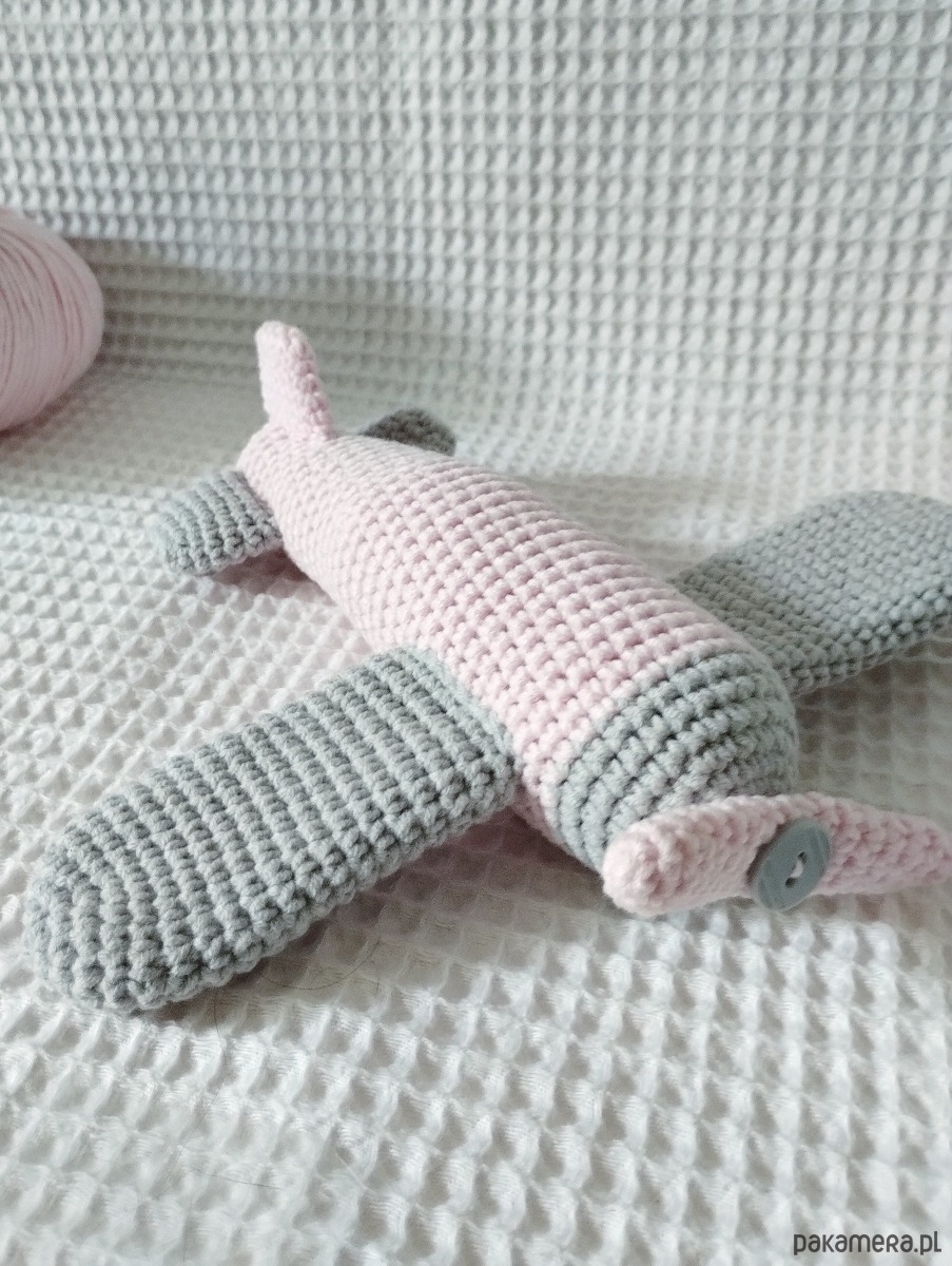 Aby samolot był łatwy w utrzymaniu czystości jest wykonany z włóczki zrobionej w 55% z bawełny, a w 45% z akrylu – bezproblemowo przejdzie proces prania zgodny z zaleceniami, które otrzymasz załączone do zabawki.