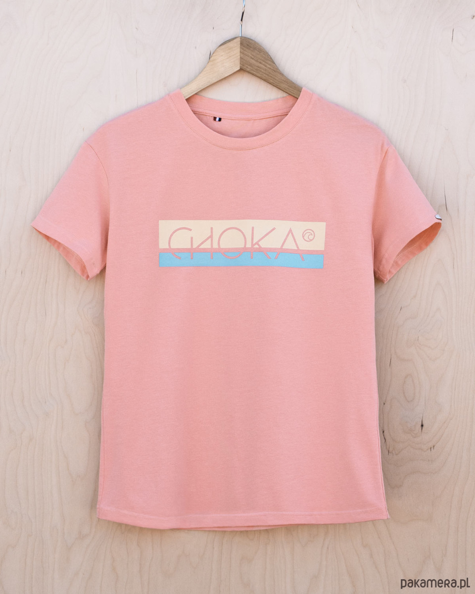Bawełniana koszulka BEACHIN' w pastelowym, koralowym kolorze.