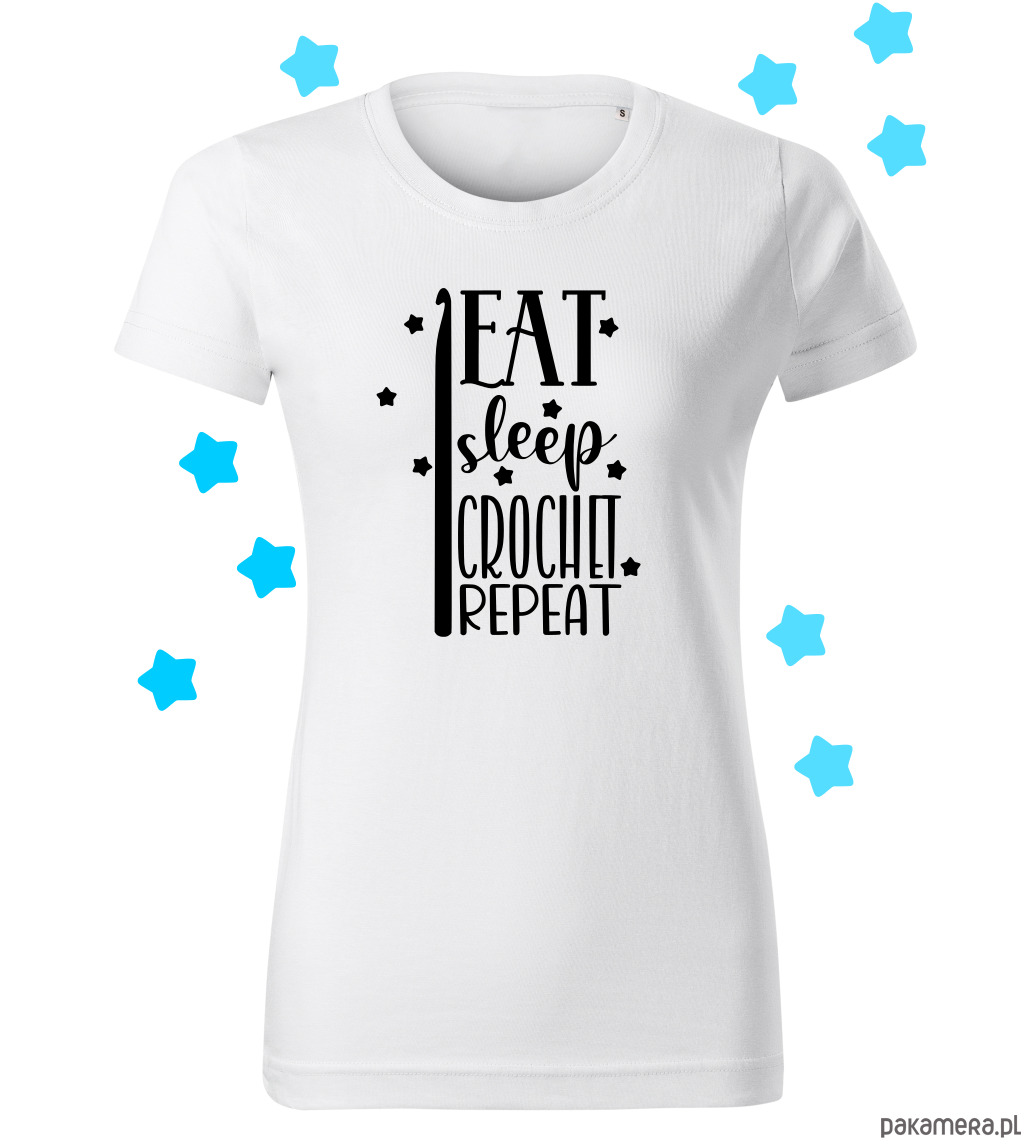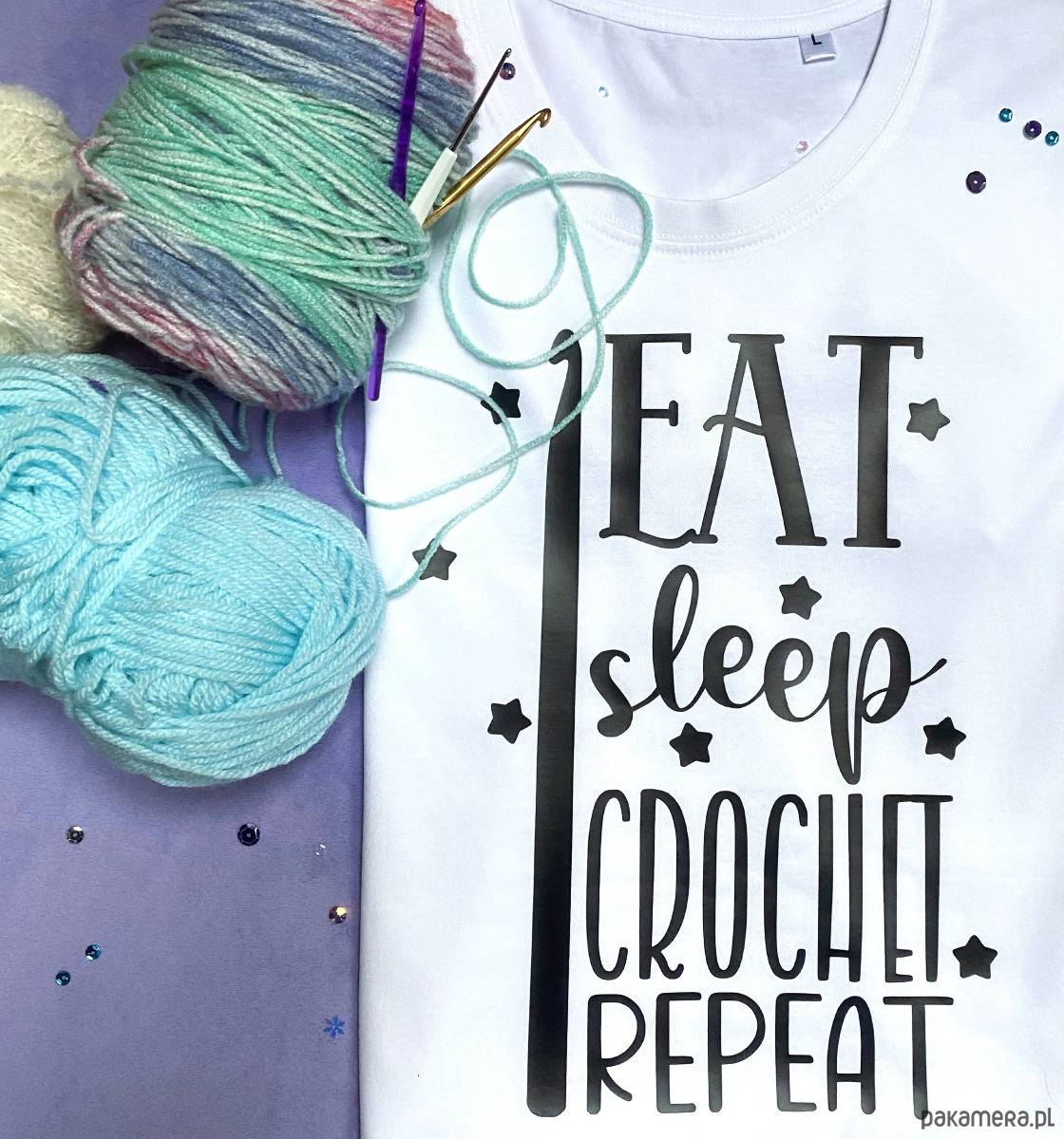 Wyraź swoją pasję z naszą koszulką „Eat. Sleep. Crochet. Repeat.”!