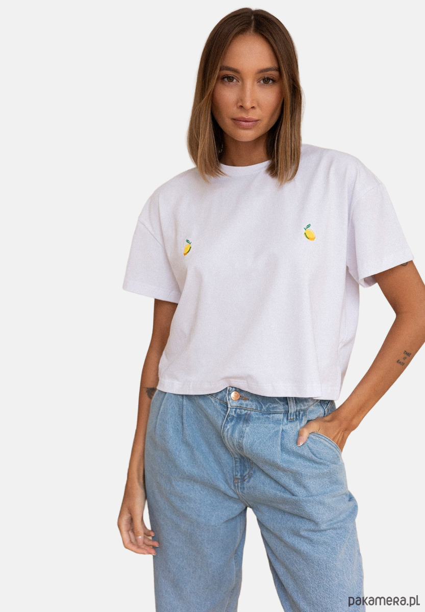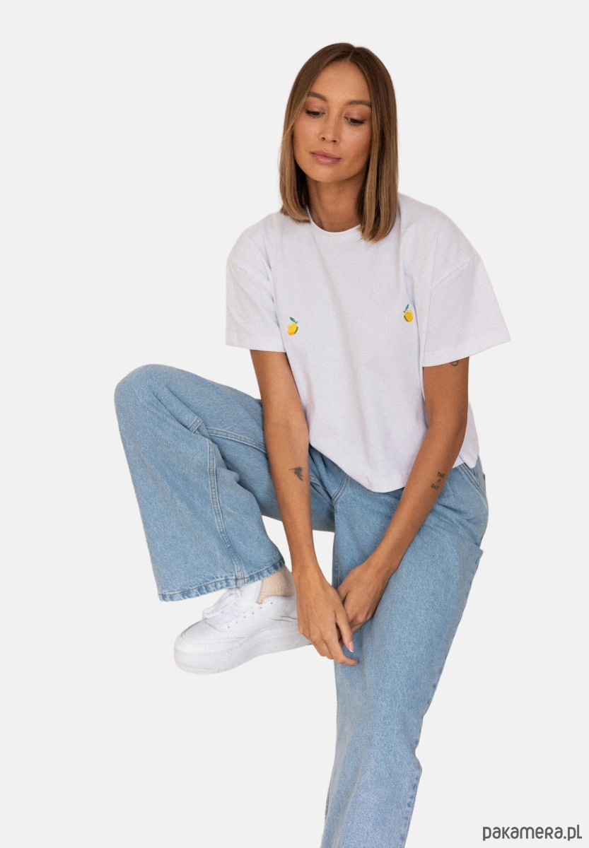 Ma obszerny, luźniejszy, ale zdecydowanie krótszy krój, podkreślający talię. Do tego delikatnie wywinięte rękawki i odpowiednio dopieszczone wykończenie. Wykonany jest z wysokiej jakości, przewiewnej bawełny o gramaturze 180, która zapewni Wam komfort noszenia. Do tego dziewczęcy haft w postaci białych stokrotek.Ten model znakomicie odnajdzie się w różnych stylizacjach. Z leginsami czy dresami będzie udaną propozycją na popołudnie spędzone na kanapie, a z dżinsami i ramoneską możecie porwać go na spotkanie ze znajomymi. Po prostu Voilà - z nim zawsze jesteście gotowe do wyjścia, nasza idealna koszulka na każdy dzień.Dostępny w 4 rozmiarach: XXS/XS, S/M, L/XL i XXL.