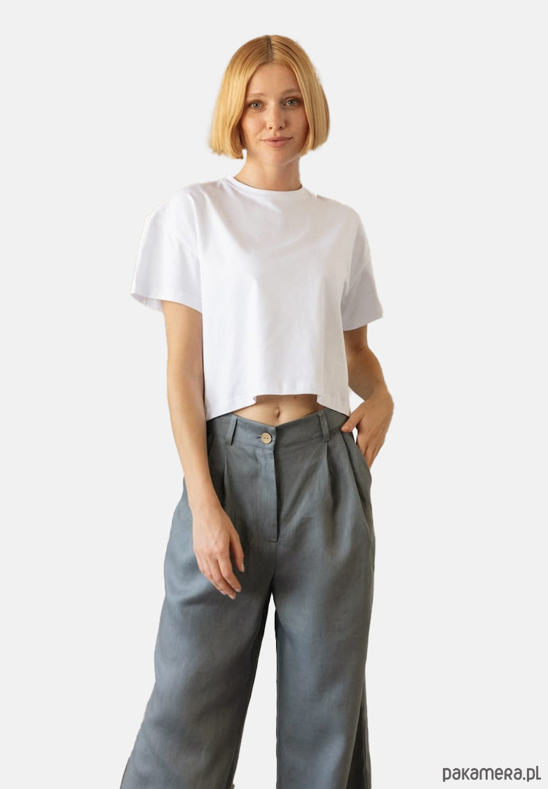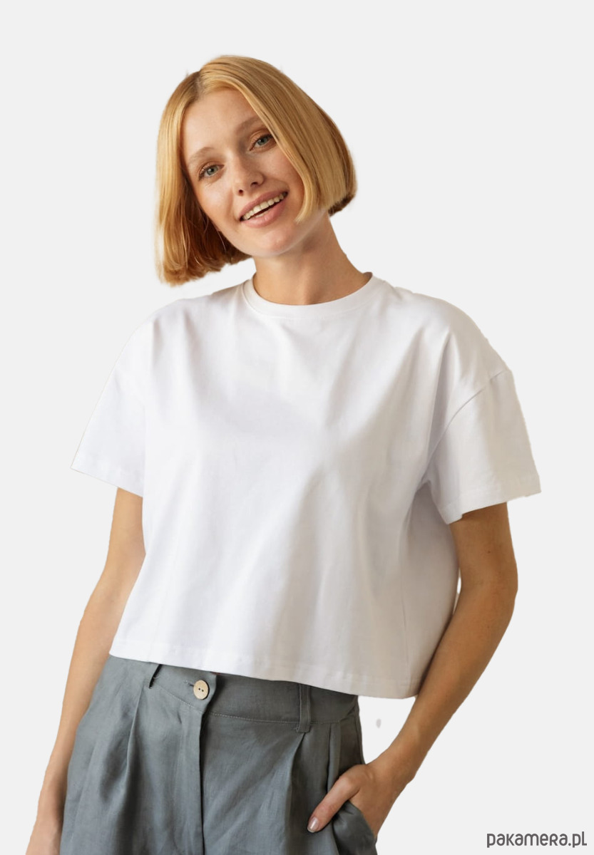 Ma obszerny, luźniejszy, ale zdecydowanie krótszy krój, podkreślający talię. Do tego delikatnie wywinięte rękawki i odpowiednio dopieszczone wykończenie. Wykonany jest z wysokiej jakości, przewiewnej bawełny o gramaturze 180, która zapewni Wam komfort noszenia. Do tego dziewczęcy haft w postaci białych stokrotek.Ten model znakomicie odnajdzie się w różnych stylizacjach. Z leginsami czy dresami będzie udaną propozycją na popołudnie spędzone na kanapie, a z dżinsami i ramoneską możecie porwać go na spotkanie ze znajomymi. Po prostu Voilà - z nim zawsze jesteście gotowe do wyjścia, nasza idealna koszulka na każdy dzień.Dostępny w 4 rozmiarach: XXS/XS, S/M, L/XL i XXL.