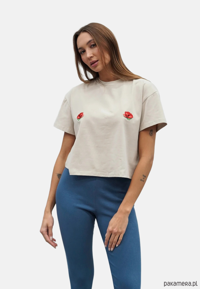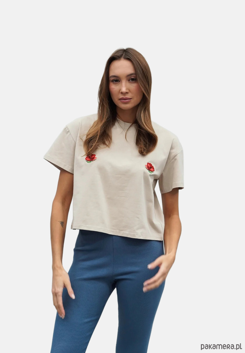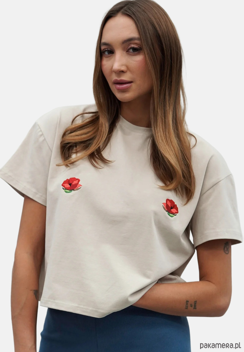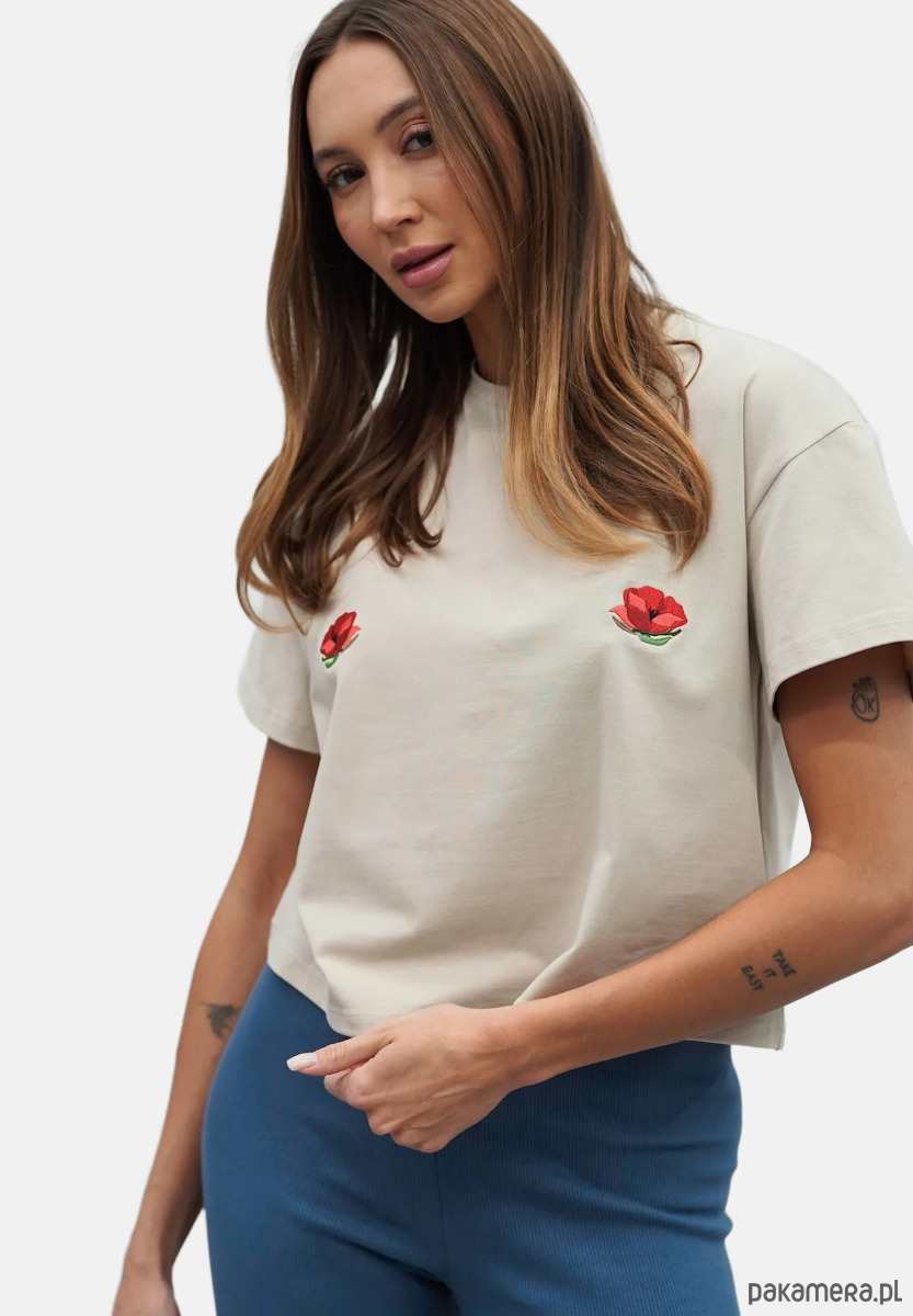Ma obszerny, luźniejszy, ale zdecydowanie krótszy krój, podkreślający talię. Do tego delikatnie wywinięte rękawki i odpowiednio dopieszczone wykończenie. Wykonany jest z wysokiej jakości, przewiewnej bawełny o gramaturze 180, która zapewni Wam komfort noszenia. Do tego dziewczęcy haft w postaci białych stokrotek.Ten model znakomicie odnajdzie się w różnych stylizacjach. Z leginsami czy dresami będzie udaną propozycją na popołudnie spędzone na kanapie, a z dżinsami i ramoneską możecie porwać go na spotkanie ze znajomymi. Po prostu Voilà - z nim zawsze jesteście gotowe do wyjścia, nasza idealna koszulka na każdy dzień.Dostępny w 4 rozmiarach: XXS/XS, S/M, L/XL i XXL.