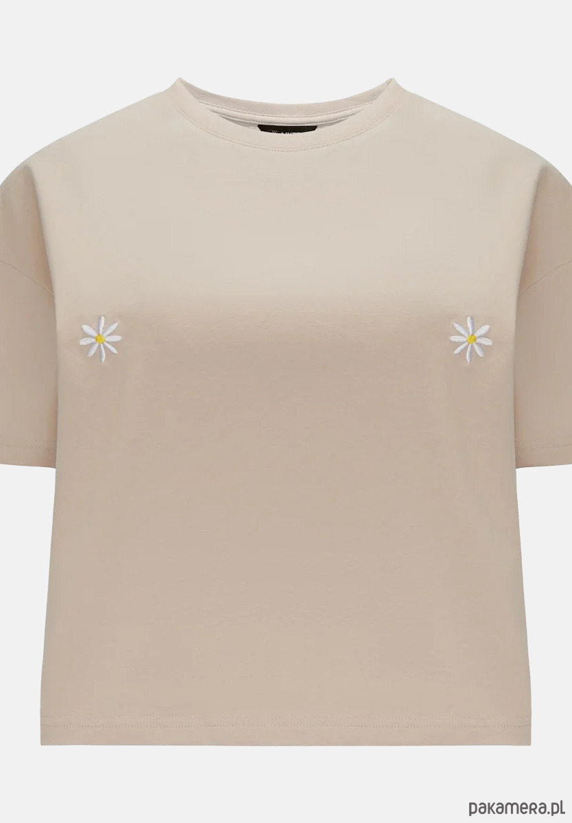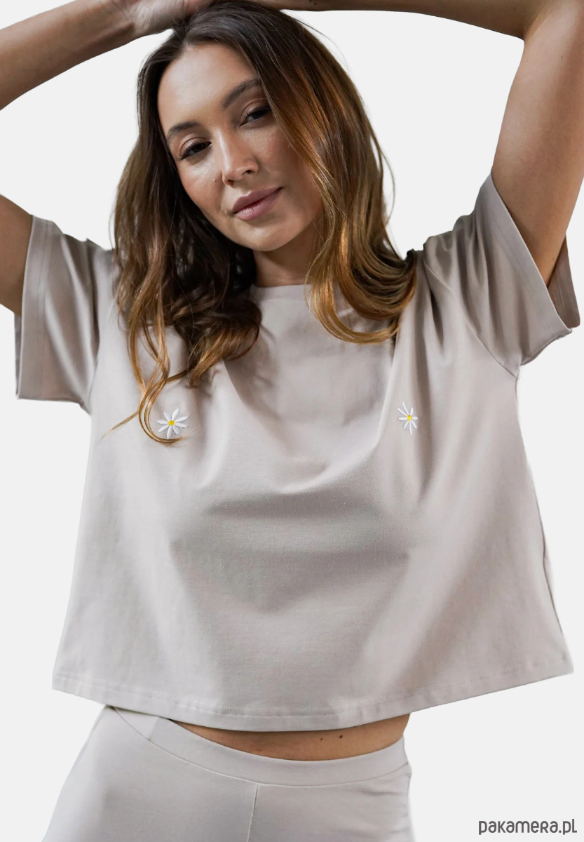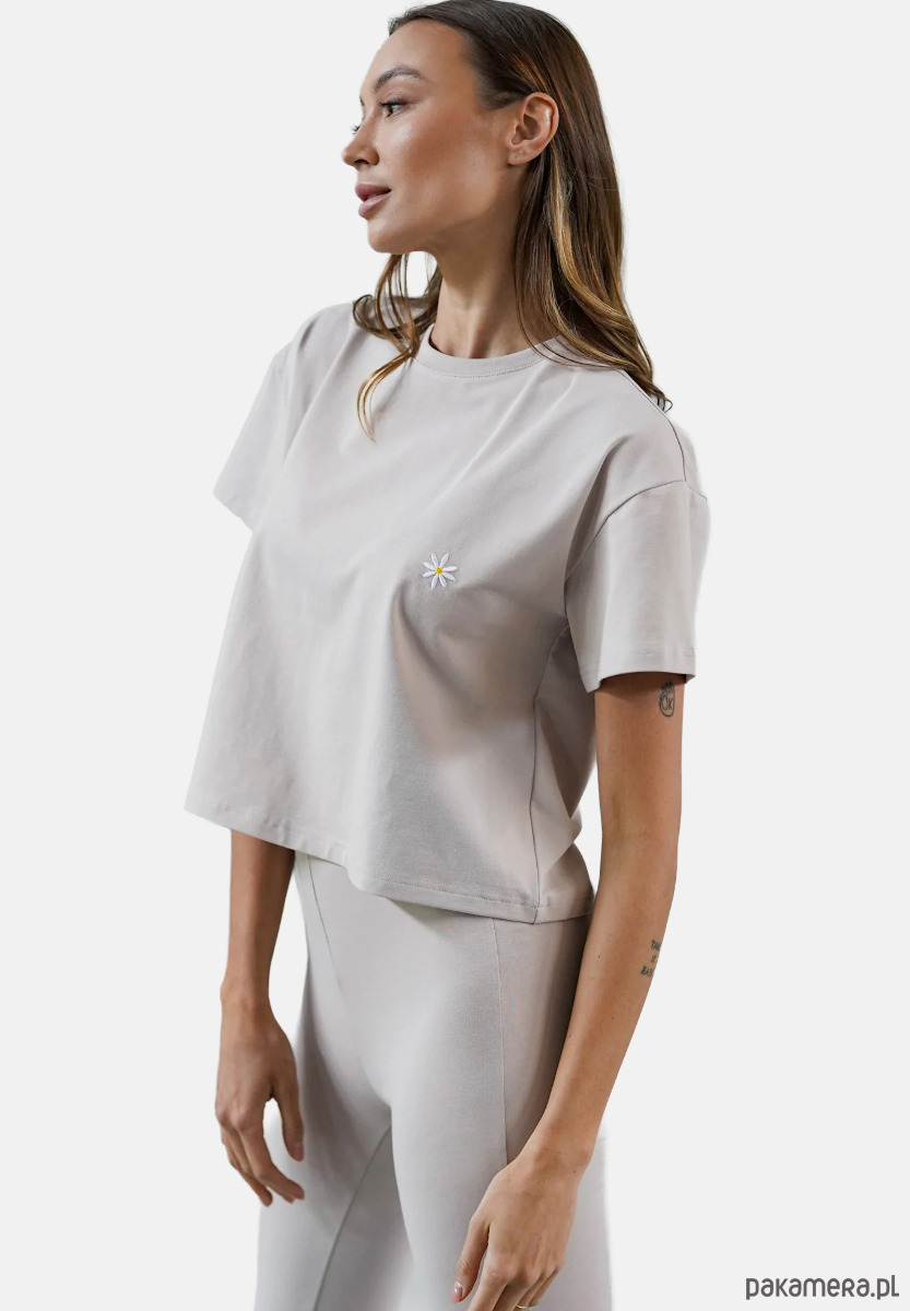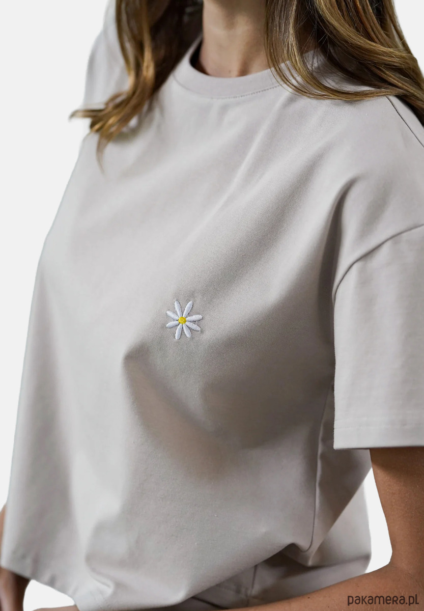 Ma obszerny, luźniejszy, ale zdecydowanie krótszy krój, podkreślający talię. Do tego delikatnie wywinięte rękawki i odpowiednio dopieszczone wykończenie. Wykonany jest z wysokiej jakości, przewiewnej bawełny o gramaturze 180, która zapewni Wam komfort noszenia. Do tego dziewczęcy haft w postaci białych stokrotek.Ten model znakomicie odnajdzie się w różnych stylizacjach. Z leginsami czy dresami będzie udaną propozycją na popołudnie spędzone na kanapie, a z dżinsami i ramoneską możecie porwać go na spotkanie ze znajomymi. Po prostu Voilà - z nim zawsze jesteście gotowe do wyjścia, nasza idealna koszulka na każdy dzień.Dostępny w 4 rozmiarach: XXS/XS, S/M, L/XL i XXL.