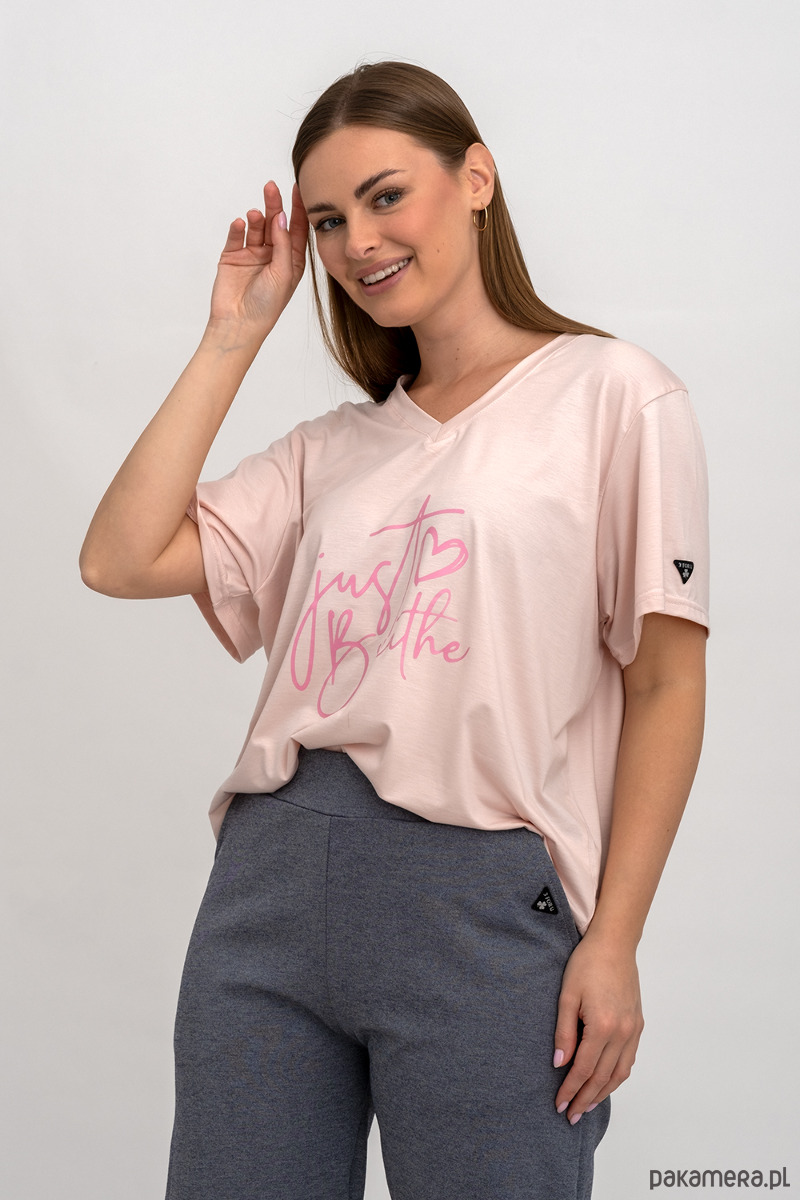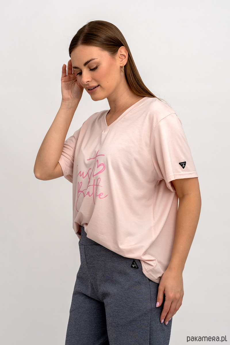 T SHIRT DAMSKI do serka z nadrukiem różowy