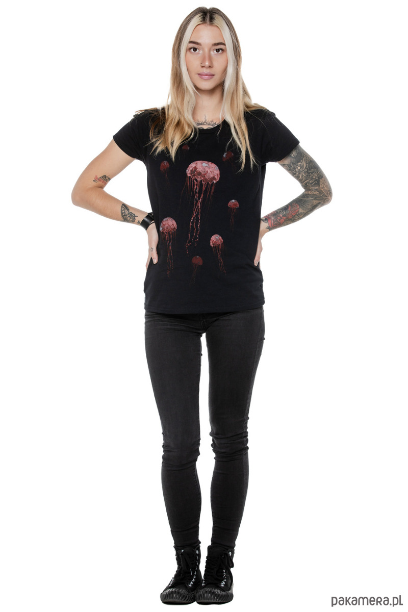 Oryginalna koszulka z autorskim projektem najnowszej kolekcji marki Underworld.Koszulka wykonana jest z najwyższej jakości uszlachetnionej, czesanej bawełny (100% ring spun cotton o gramaturze 185g/m2). Silnie skręcone włókna o małym splocie sprawiają, że jest bardzo miękka i przyjemna w dotyku, przez co nie wymaga stosowania zmiękczających środków chemicznych w procesie produkcyjnym (produkt ekologiczny).Tak zwarta i mięsista struktura włókien wpływa też na bardziej ekologiczny sposób jej eksploatacji - dodatkowe środki zmiękczające, które z reguły stosuje się podczas prania, w tym przypadku są zbędne. T-shirt nawet po setnym praniu nie kurczy się i nie blaknie.Posiada ekologiczny nadruk wykonany farbami wodnymi. Nadruk ten jest bardzo miękki i prawie niewyczuwalny w dotyku, do tego trwały i odpory na prasowanie.