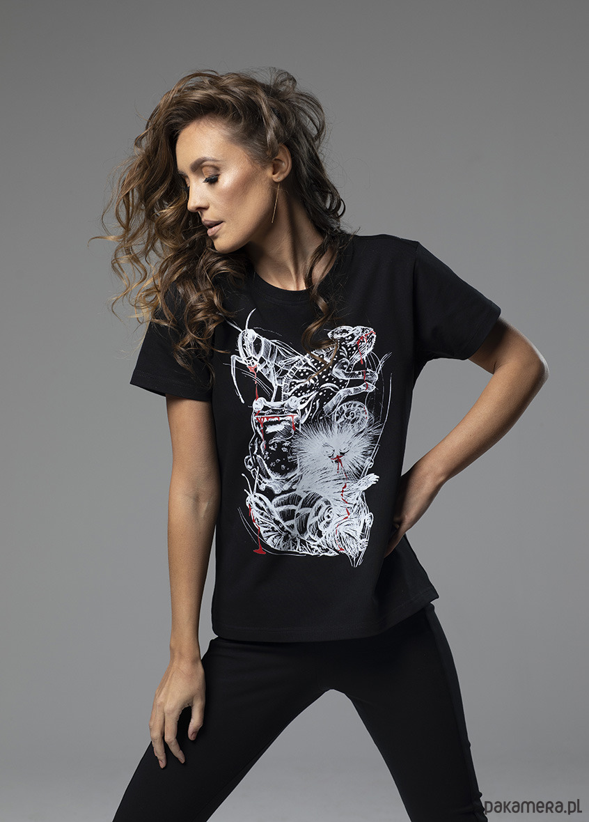 T-shirt damski zwierzątka czarny