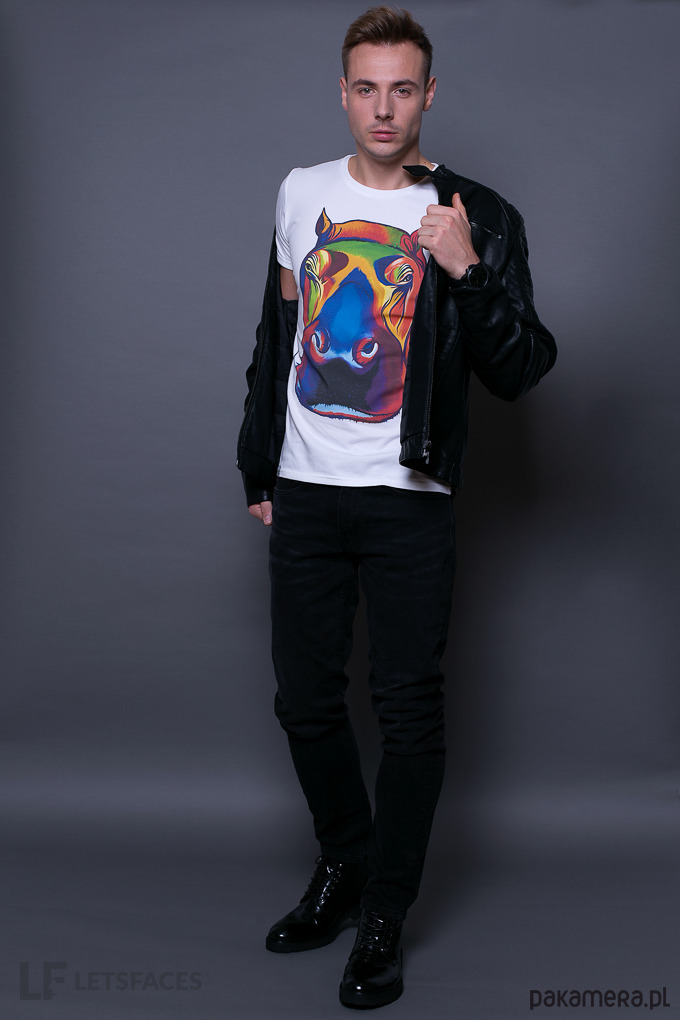 Doskonałej jakości bawełniany T-shirt z osobliwym nadrukiem. Zastosowany materiał oraz krój zapewniają komfort noszenia i niepowtarzalny wygląd.