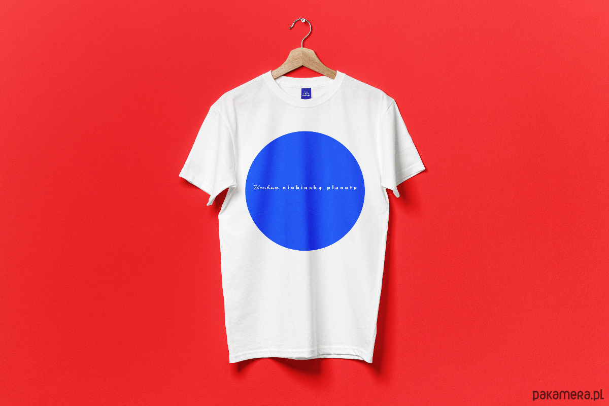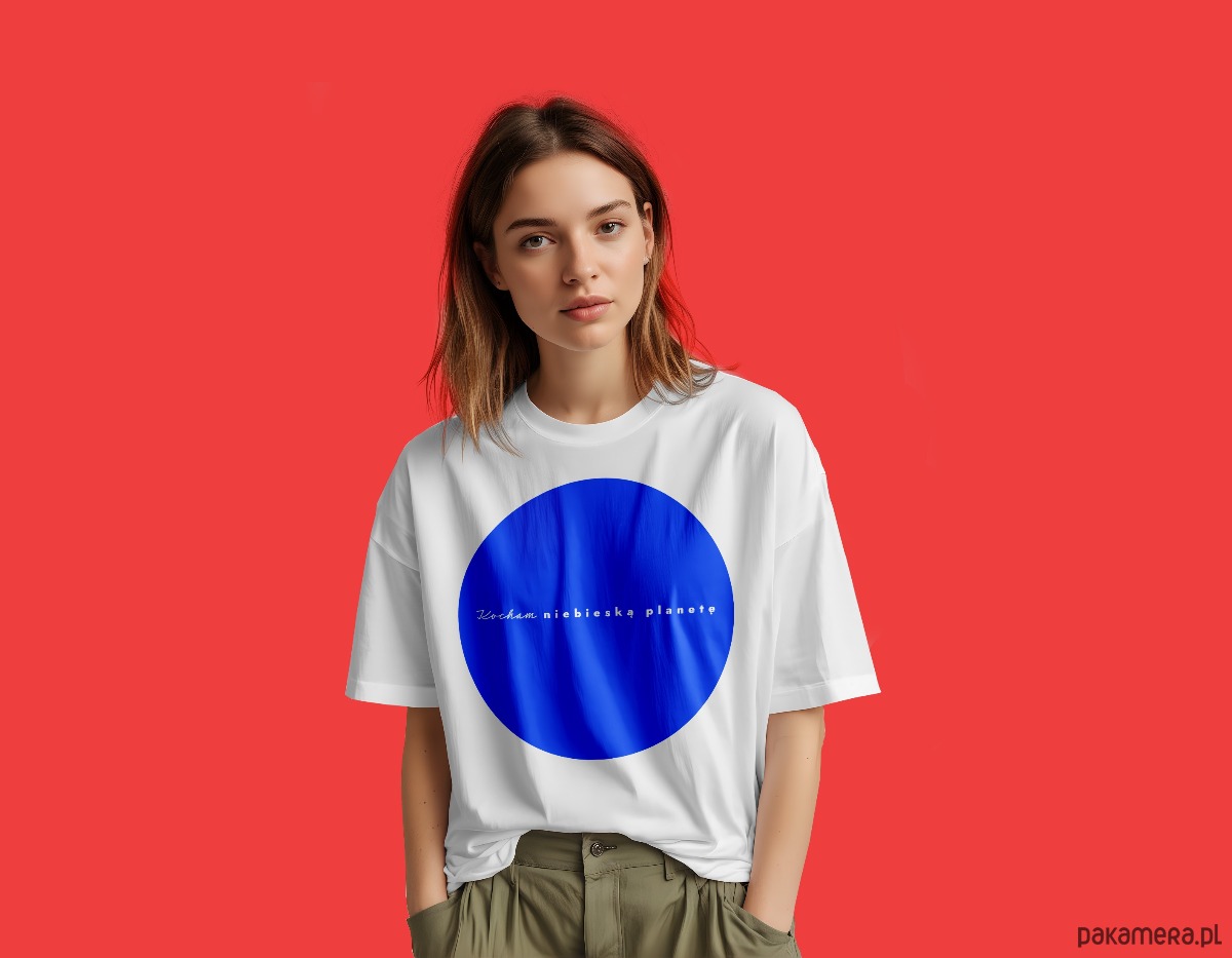Biały, klasyczny t-shirt z autorską grafiką WARSAW BIRDS, Kocham niebieską planetę. Prosta grafika i przekaz w kolorze ultramaryny. Dla miłośników przyrody, matki Ziemi, naszej cudownej planety. Koszulki damskie i męskie są firmy B&C o gramaturze 185 g, 100 % bawełny.