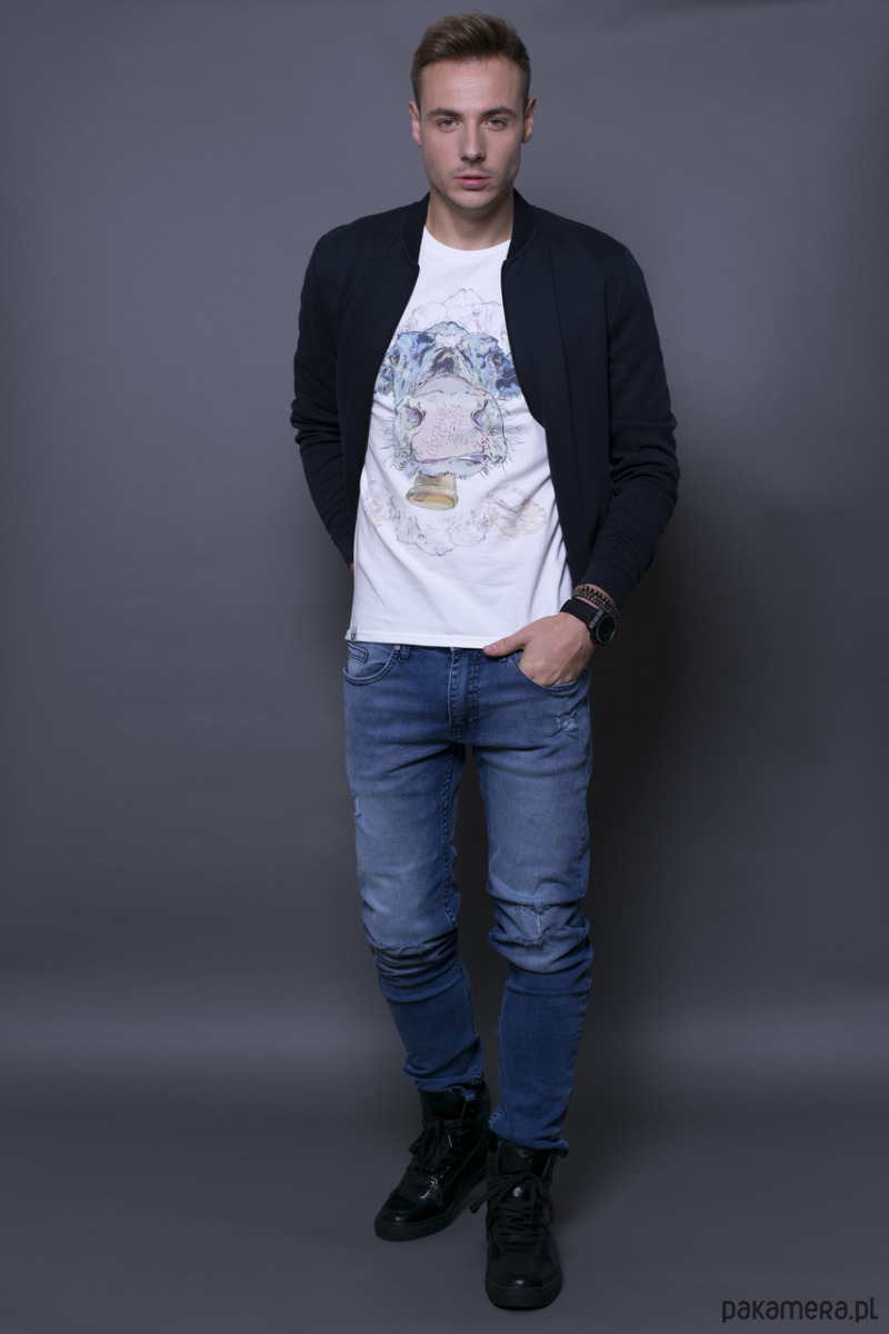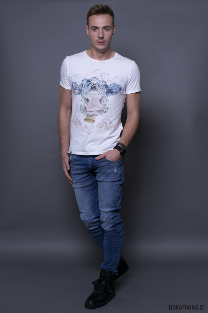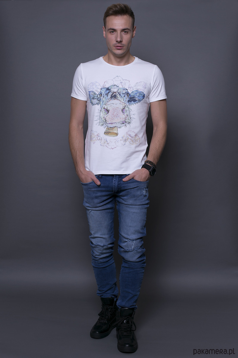 Doskonałej jakości bawełniany T-shirt z osobliwym nadrukiem. Zastosowany materiał oraz krój zapewniają komfort noszenia i niepowtarzalny wygląd.