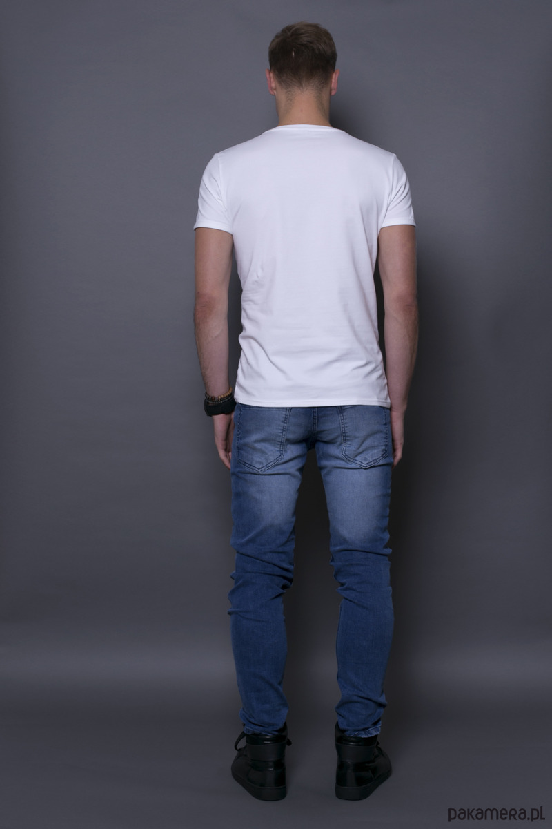 Wzrost modela to 186 cm, obwód klatki piersiowej 100 cm, nosi rozmiar M.