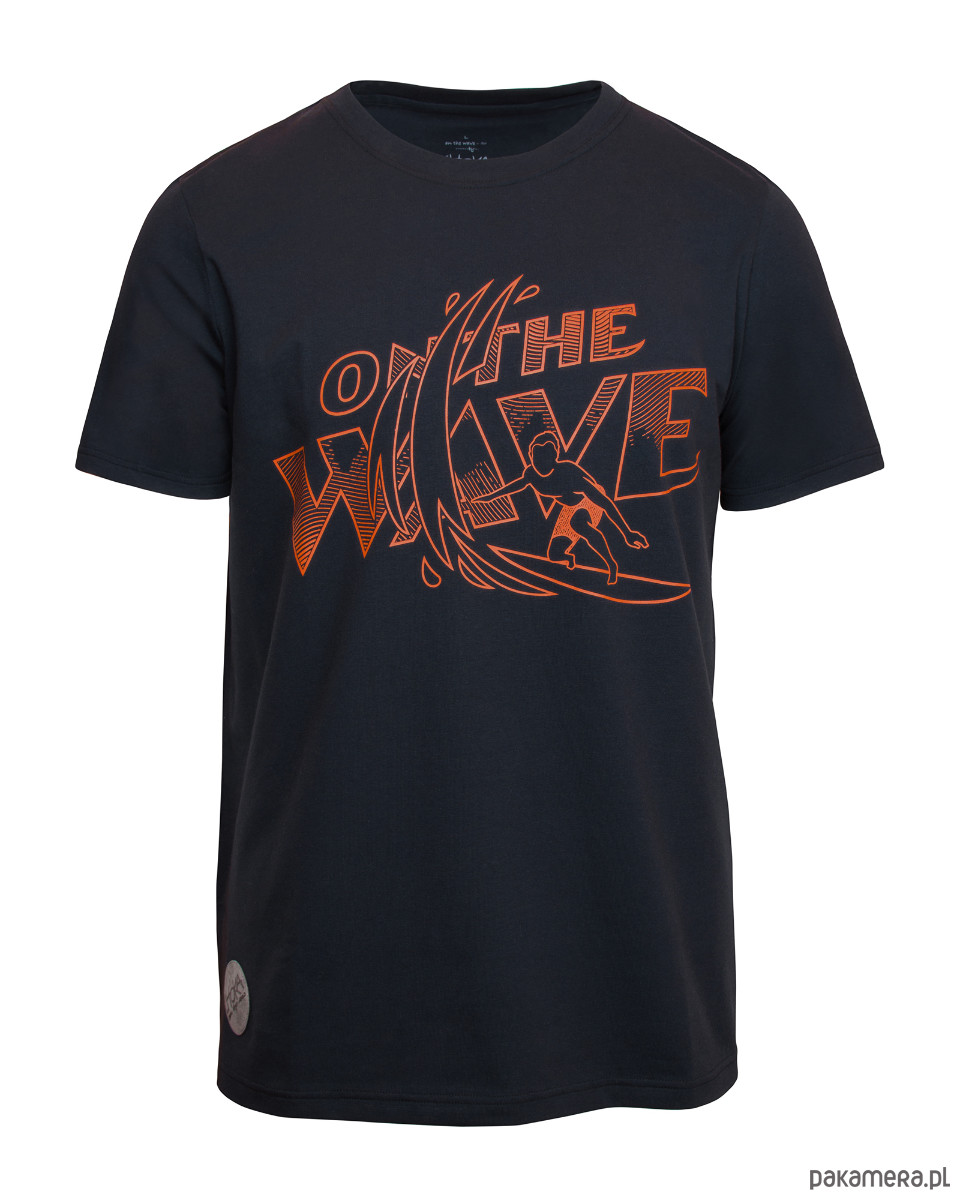 Wykonany z miękkiego, przyjemnego w dotyku, a zarazem bardzo trwałego materiału, t-shirt CHOKA o klasycznym, męskim kroju. Dodatek elastanu sprawia, że koszulka świetnie się układa i nie krępuje ruchów. Z przodu miękki, trwały nadruk: ON THE WAVE i naszywka CHOKA z eko skóry.