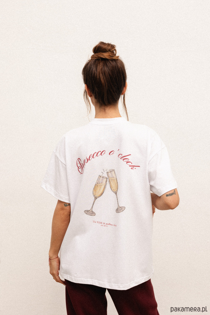 Pamiętacie nasz T-shirt PROSECCO O'CLOCK? W tym roku wraca w nowej odsłonie! Zakochacie się w tym modelu – to idealny wybór na prezent dla Ciebie, siostry, mamy, przyjaciółki czy każdej dobrej kompanki zabawy. T-shirt posiada dużą aplikację na plecach oraz małą aplikację na froncie, które nadają mu wyjątkowego charakteru.