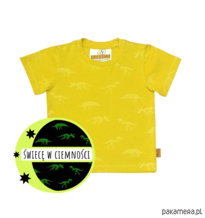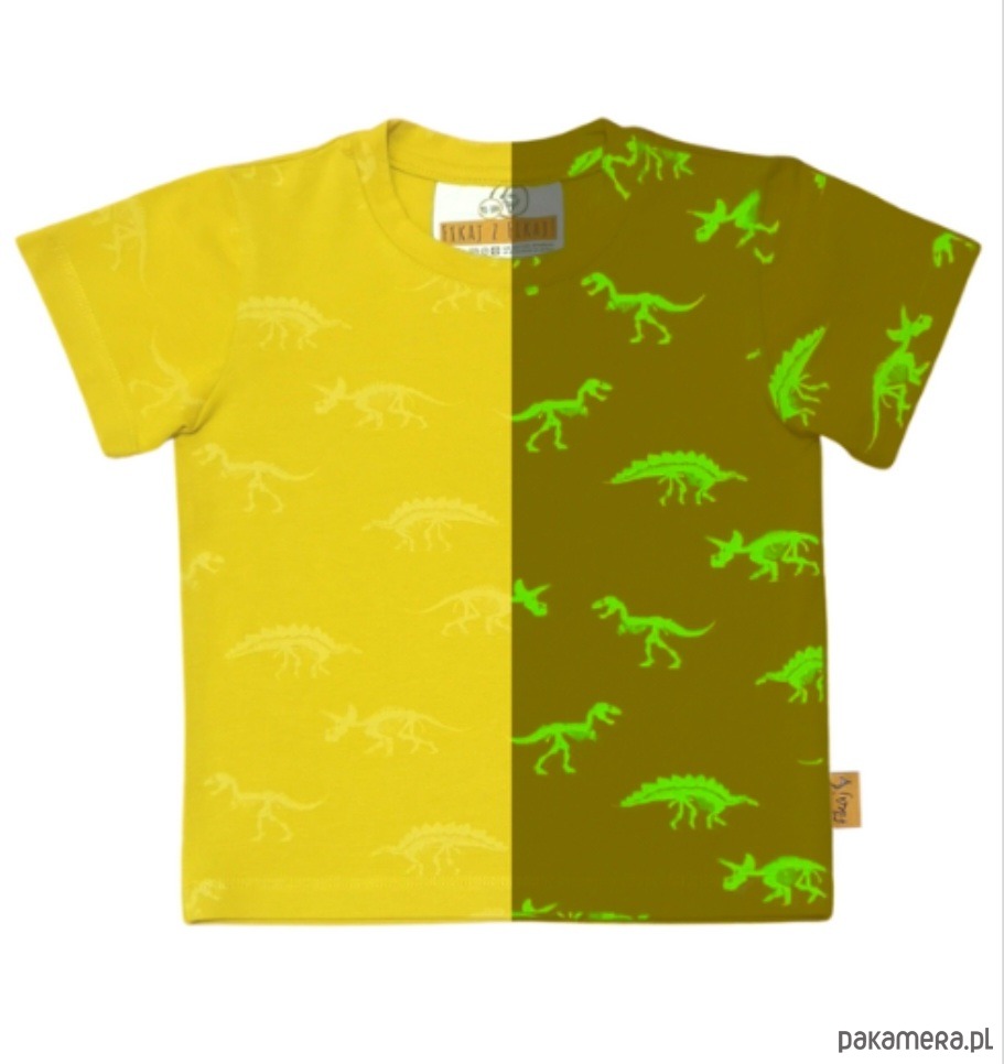 Co to za magiczny t-shirt dziecięcy?! Jak to możliwe, że gdy chłopiec wchodzi na ciemnego pomieszczenia dinusie na bluzeczce zaczynają świecić w ciemności? A gdy dziecko wejdzie do jasnego wnętrza motyw dinozaura zblednie.