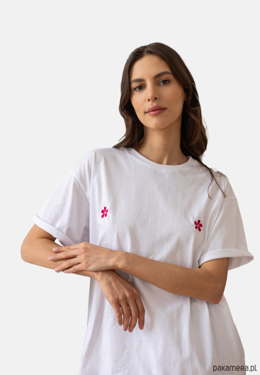 Basicowa, ponadczasowa propozycja, ale odpowiednio podkręcona, która wie, jak rozgościć się (i to z sukcesem) w kobiecej garderobie. Poznajcie T-shirt Voilà, którego brakowało nam w naszej kolekcji.Ma obszerny, luźniejszy krój, delikatnie wywinięte rękawki, a samo wykończenie zostało oczywiście odpowiednio dopieszczone. Wykonany jest z wysokiej jakości, przewiewnej bawełny o gramaturze 180, która zapewni Wam komfort noszenia.Dostępny w jednym, oversizowym rozmiarze.Ten model znakomicie odnajdzie się w różnych stylizacjach. Z leginsami czy dresami będzie udaną propozycją na popołudnie spędzone na kanapie, a z dżinsami i ramoneską możecie porwać go na spotkanie ze znajomymi. Po prostu Voilà - z nim zawsze jesteście gotowe do wyjścia, nasza idealna koszulka na każdy dzień.
