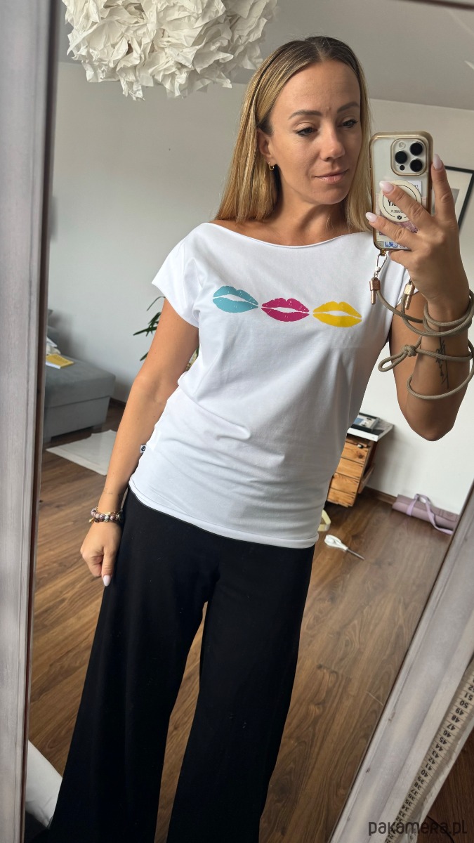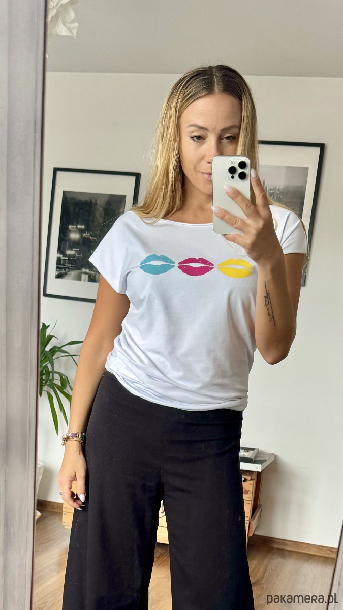 t-shirt z kolorowymi ustami w przepięknych, pastelowych kolorach