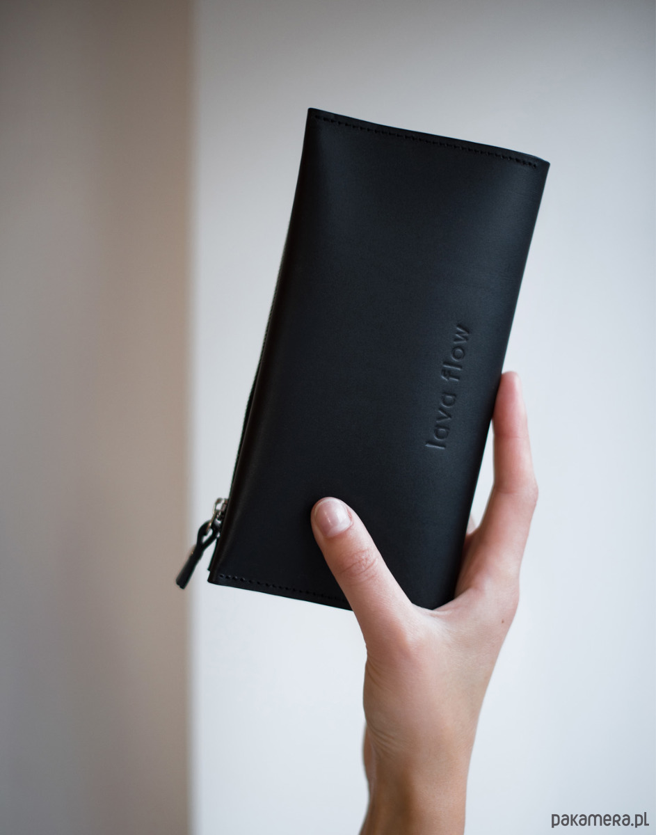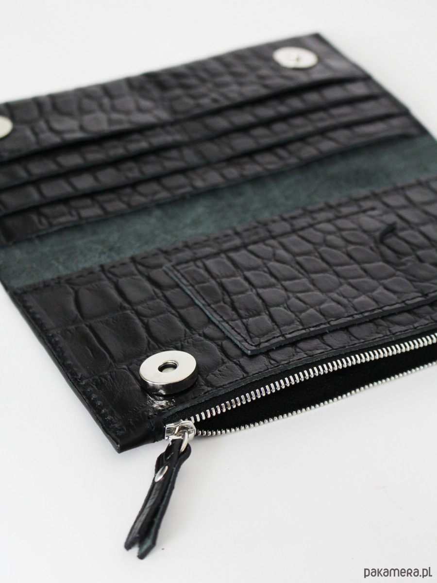 Taal minimalistyczny płaski protfel posiadający 6 przegródek na karty, kieszonkę zapinaną na suwak na monety oraz kieszeń na banknoty lub telefon. Całość pazinana na zapięcie magnetyczne.
