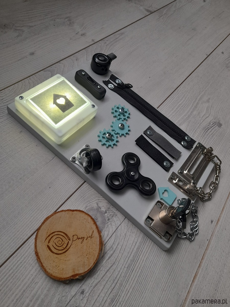 Prezentowana przez nas tablica manipulacyjna w wersji „mini” wykonana jest na drewnianej sklejce brzozowej.